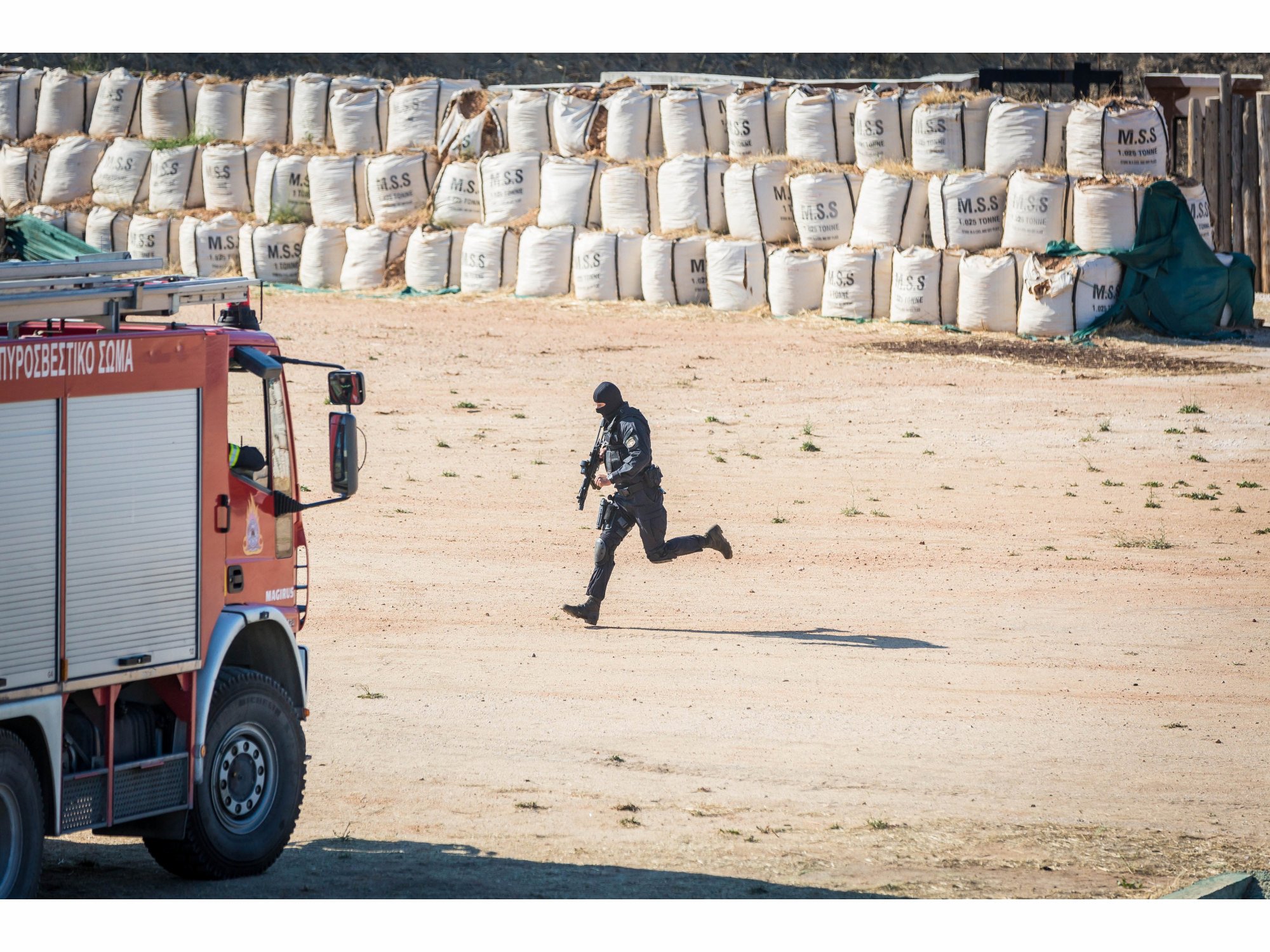 Για την εκπαίδευση της χρησιμοποιεί σύγχρονες εγκαταστάσεις που έχει κατασκευάσει σε δικό της χώρο στην Αμυγδαλέζα Αττικής. Επίσης χρησιμοποιεί κτίρια σε αστικές ή αγροτικές περιοχές, κατοικημένα ή όχι, το Διεθνές Αεροδρόμιο της Αθήνας και αεροσκάφη των Ολυμπιακών Αερογραμμών, τις εγκαταστάσεις του Λιμένα Πειραιά, του σιδηροδρομικού δικτύου, του ΜΕΤΡΟ, τα πεδία βολής των Ενόπλων Δυνάμεων καθώς και όποιο άλλο μέρος κρίνεται ικανό για εκπαιδευτικούς σκοπούς σε όλη τη χώρα.