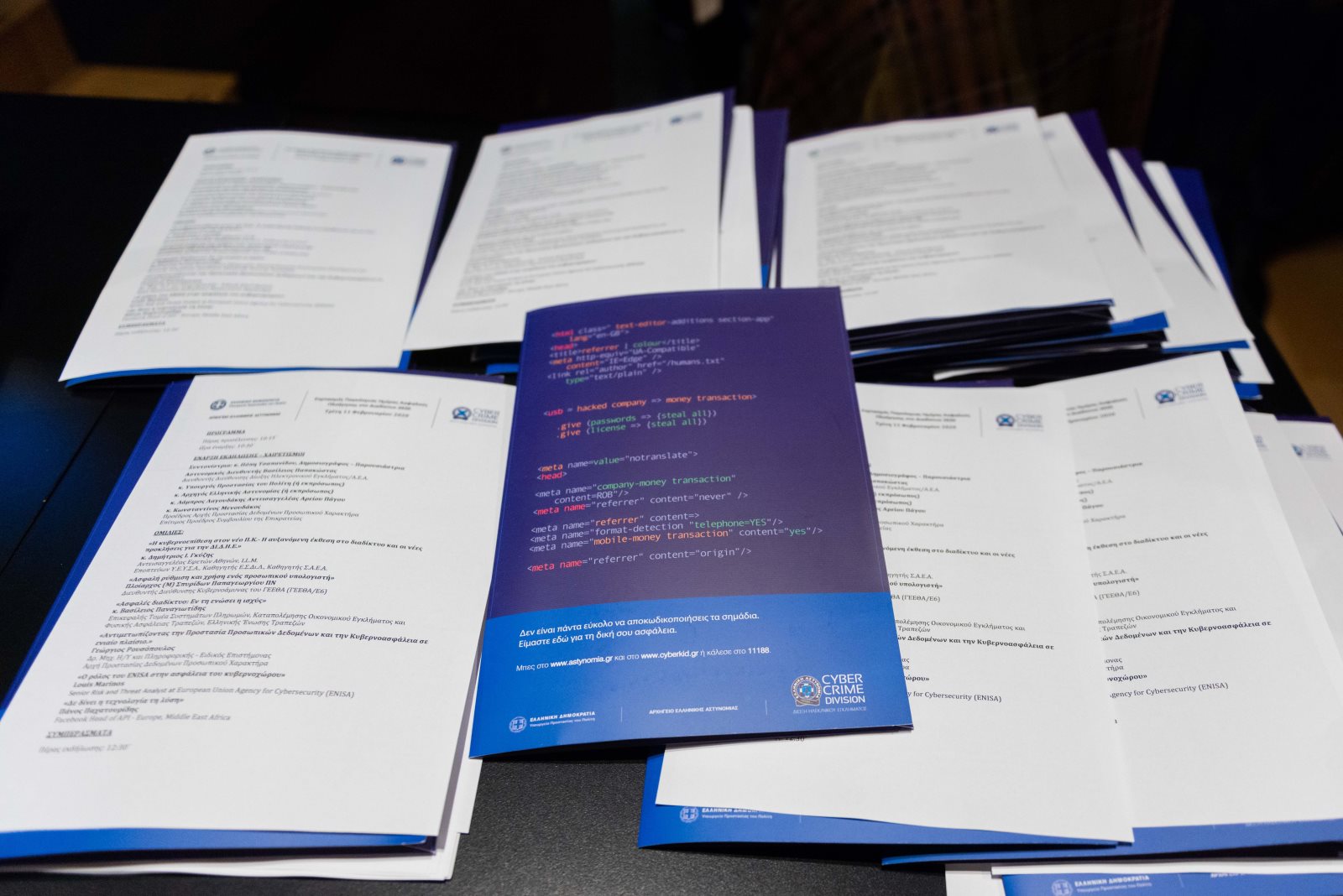 Ως ομιλητές συμμετείχαν ο Αντεισαγγελέας Εφετών Αθηνών κ. Δημήτριος Ι. Γκύζης, ο Πλοίαρχος Π.Ν. (Μ) Σπυρίδων Παπαγεωργίου, Διευθυντής ΓΕΕΘΑ/Ε6 (Διεύθυνση Κυβερνοάμυνας), ο Επικεφαλής Τομέα Συστημάτων Πληρωμών, Καταπολέμησης Οικονομικού Εγκλήματος και Φυσικής Ασφάλειας Τραπεζών της Ελληνικής Ένωσης Τραπεζών, κ. Βασίλειος Παναγιωτίδης, ο κ. Γεώργιος Ρουσόπουλος Δρ. Μηχ. Η/Υ και Πληροφορικής – Ειδικός Επιστήμονας από την Αρχή Προστασίας Δεδομένων Προσωπικού Χαρακτήρα, ο κ. Louis Marinos, Senior Risk and Threat Analyst του European Union Agency for Cybersecurity (ENISA) και ο κ. Πάνος Παχατουρίδης του Facebook Head of API – Europe, Middle.