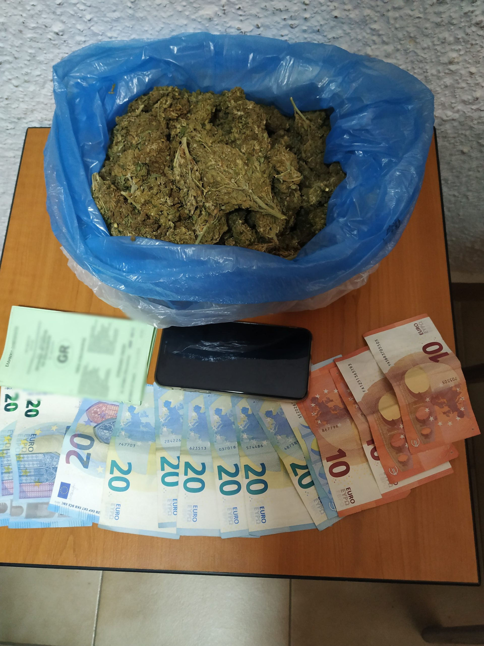Κατά τη διάρκεια της έρευνας βρέθηκαν και κατασχέθηκαν 326 γραμμάρια κάνναβης, το χρηματικό ποσό των 250 ευρώ ως προερχόμενο από παράνομες δραστηριότητες και κινητό τηλέφωνο.
