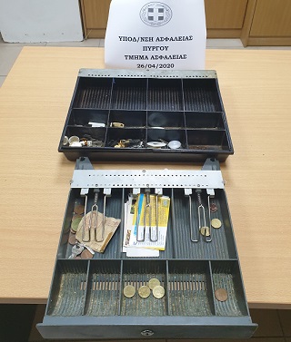 Πιο συγκεκριμένα, οι δύο δράστες, ενεργώντας από κοινού από τις 23 μέχρι και τις 26-4-2020, διέρρηξαν δύο καταστήματα υγειονομικού ενδιαφέροντος (καφετέρια και πρατήριο άρτου) και αφαίρεσαν τα συρτάρια από τις ταμειακές μηχανές, που περιείχαν το χρηματικό ποσό των (398) ευρώ.