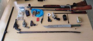 Κατασχέθηκαν όπλα, φυσίγγια διαφόρων διαμετρημάτων, βολίδες, φορητός ασύρματος και κάννες