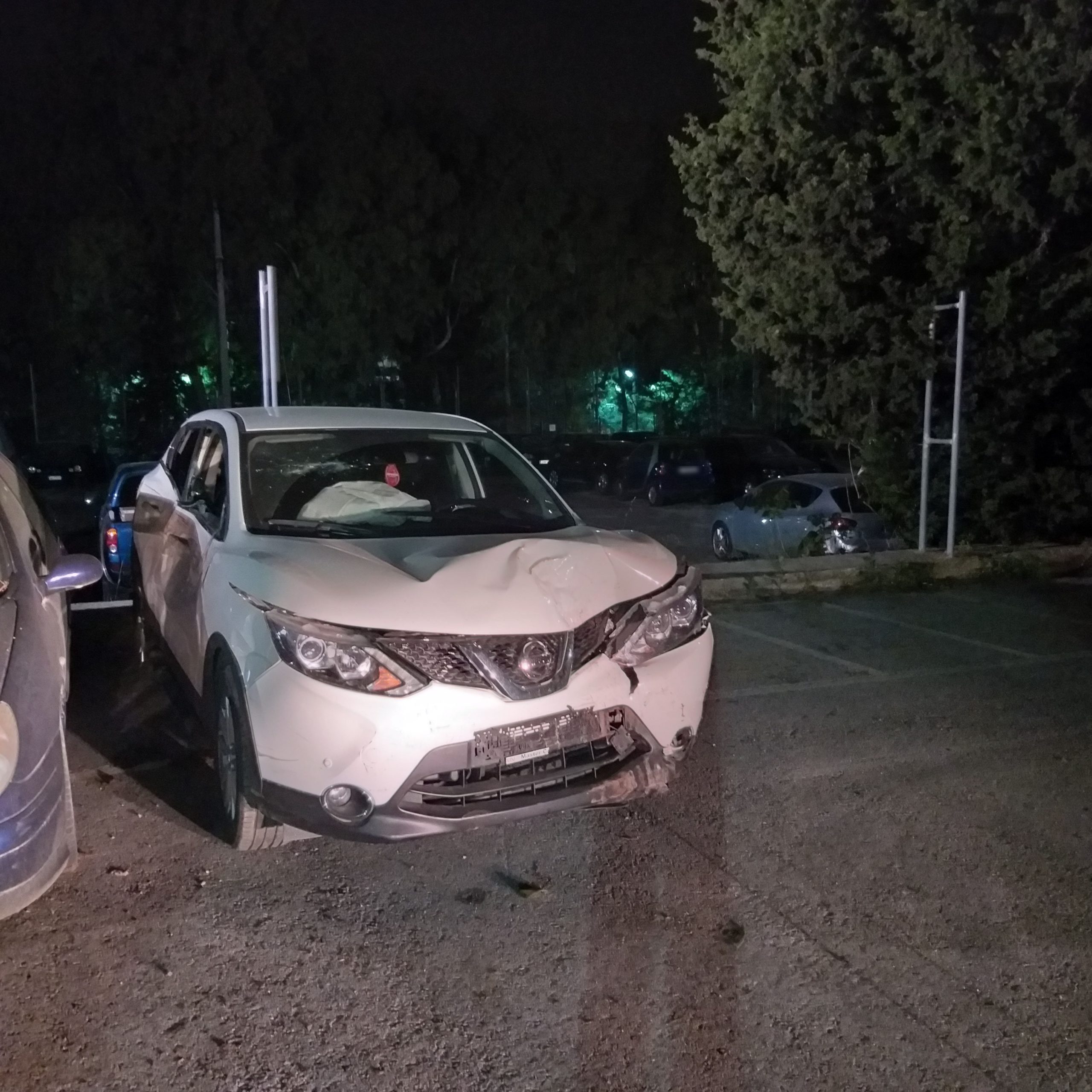 Ο δράστης, επιχειρώντας να διαφύγει, συνέχισε να κινείται επί του πεζοδρομίου και αφού προσέκρουσε σε δύο σταθμευμένα Ι.Χ.Ε. αυτοκίνητα και δύο μοτοσικλέτες, προκαλώντας τους υλικές ζημιές, προσέκρουσε σε δέντρο και ακινητοποιήθηκε.