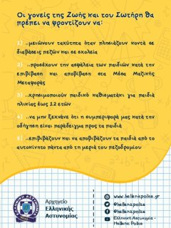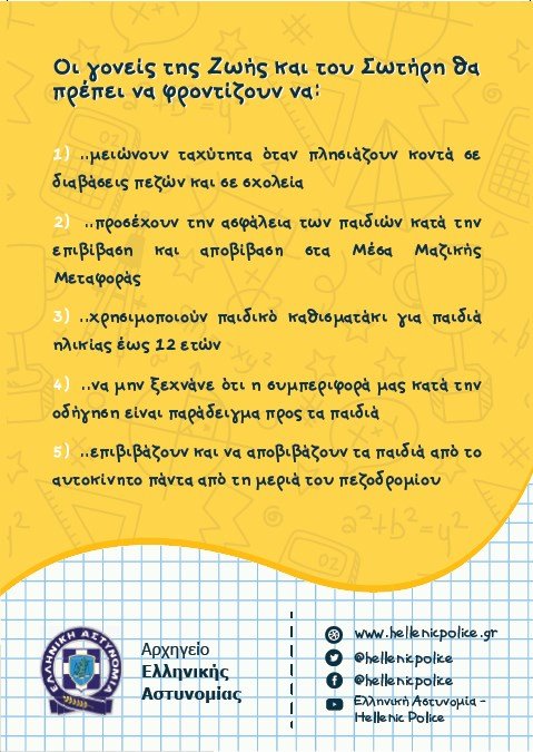 Πρόκειται για μία πρωτοβουλία του Αρχηγείου της Ελληνικής Αστυνομίας, που στοχεύει στην ενημέρωση αλλά και την ευαισθητοποίηση γονιών και μαθητών σχετικά με θέματα οδικής ασφάλειας, ιδίως κατά τις μετακινήσεις τους από και προς τα σχολικά συγκροτήματα.