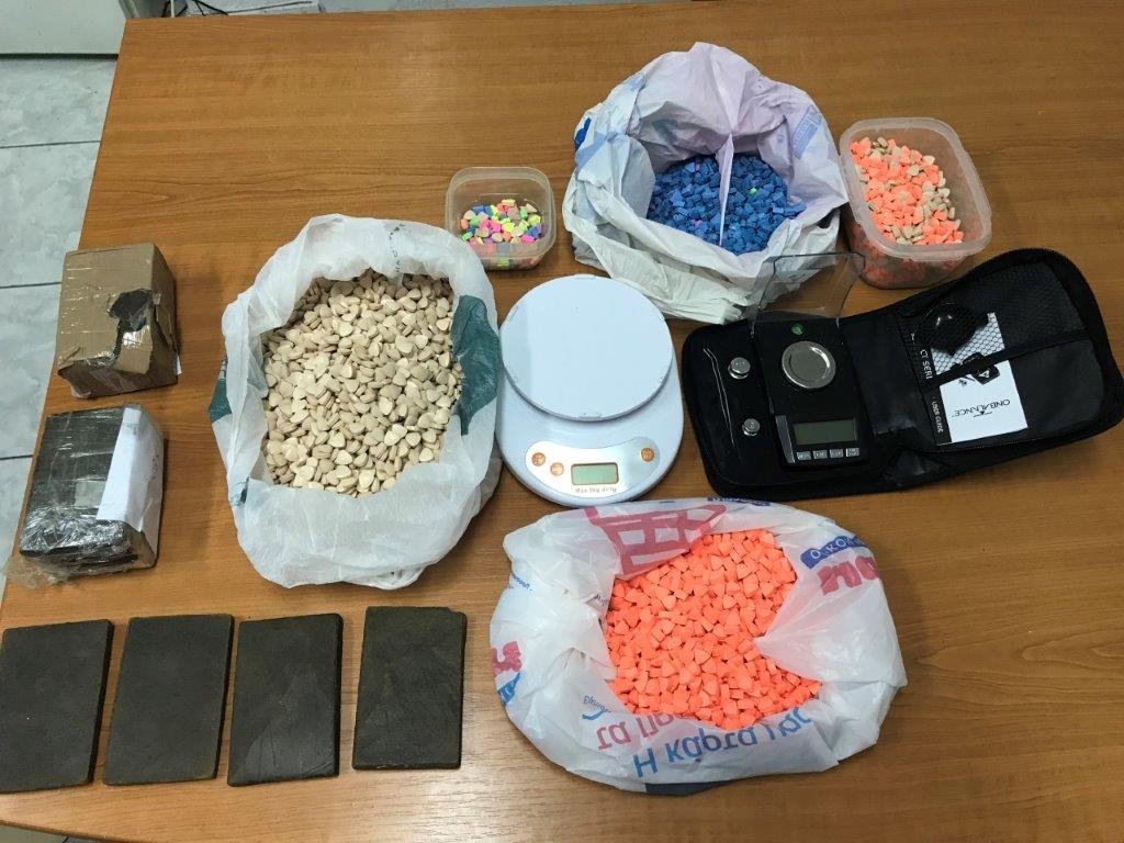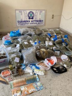Κατασχέθηκαν ποσότητα ακατέργαστης κάνναβης βάρους -47.494- γραμμ., κατεργασμένης κάνναβης βάρους -1.406- γραμμ., κοκαΐνης βάρους -574- γραμμ., -2.000- δισκία ECSTASY , -88- φιαλίδια με έλαιο κάνναβης, ζυγαριές ακριβείας οχήματα, χρηματικά ποσά κλπ