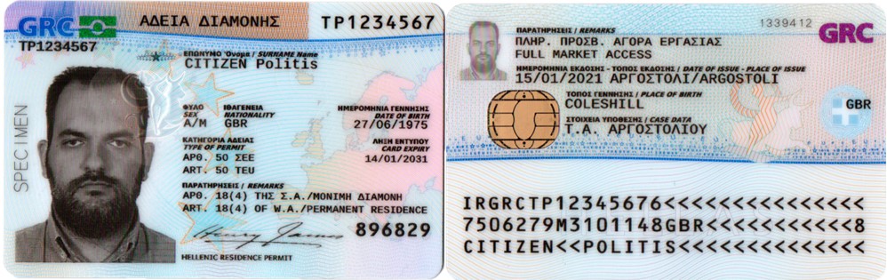 ![]() Εμπρόσθια όψη της άδειας διαμονής Οπίσθια όψη της άδειας διαμονής |
