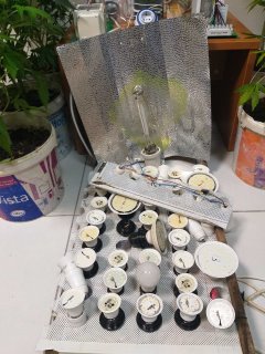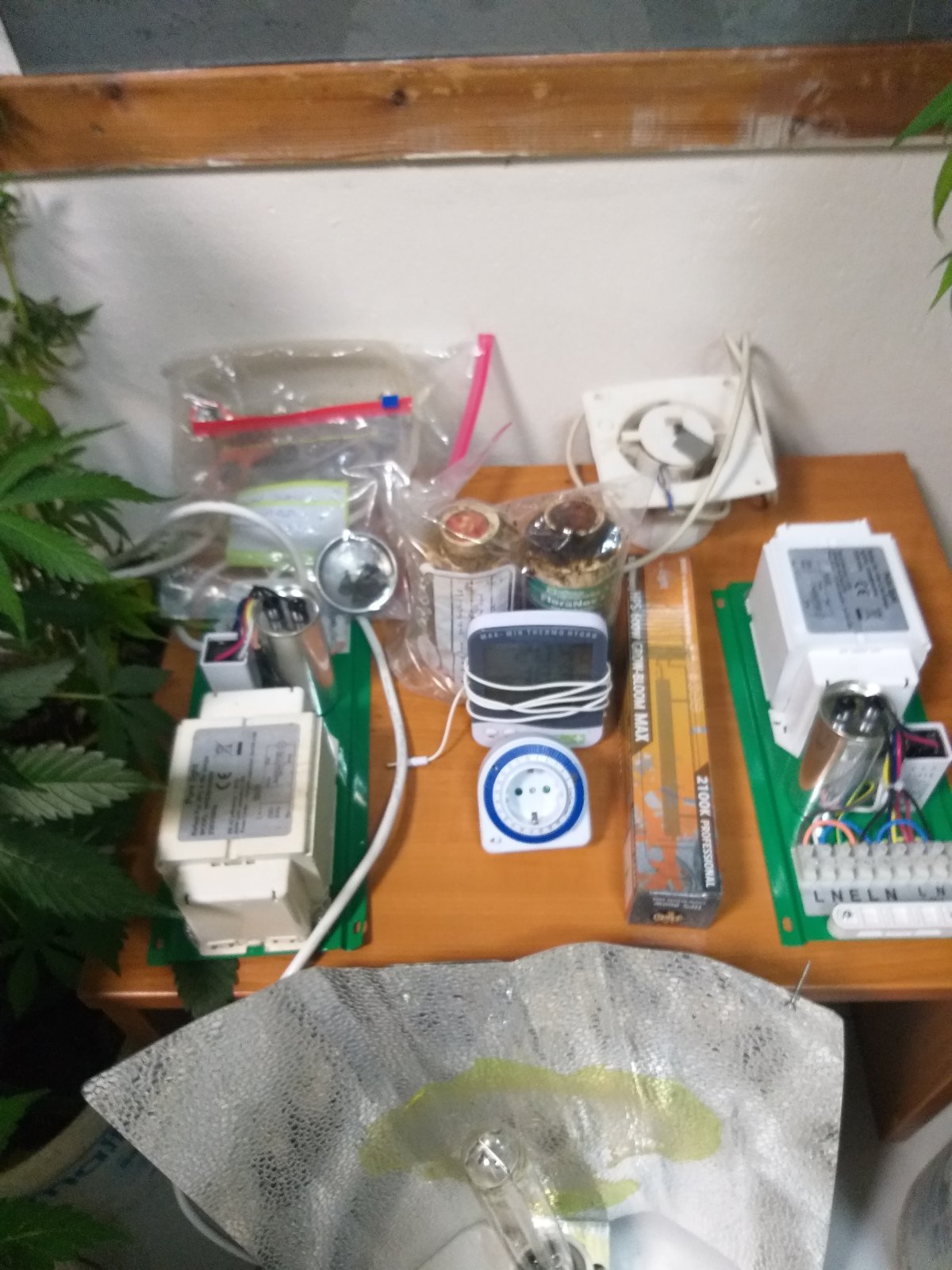 εξοπλισμός συστήματος καλλιέργειας δενδρυλλίων κάνναβης εσωτερικού χώρου (αποτελούμενο από μετασχηματιστές ηλεκτρικού ρεύματος, λαμπτήρες υψηλής ισχύος, θερμόμετρο-υγρόμετρο, χρονοδιακόπτη ηλεκτρικού ρεύματος, ανεμιστήρα εξαερισμού, υγρό ενισχυτικό λίπασμα)