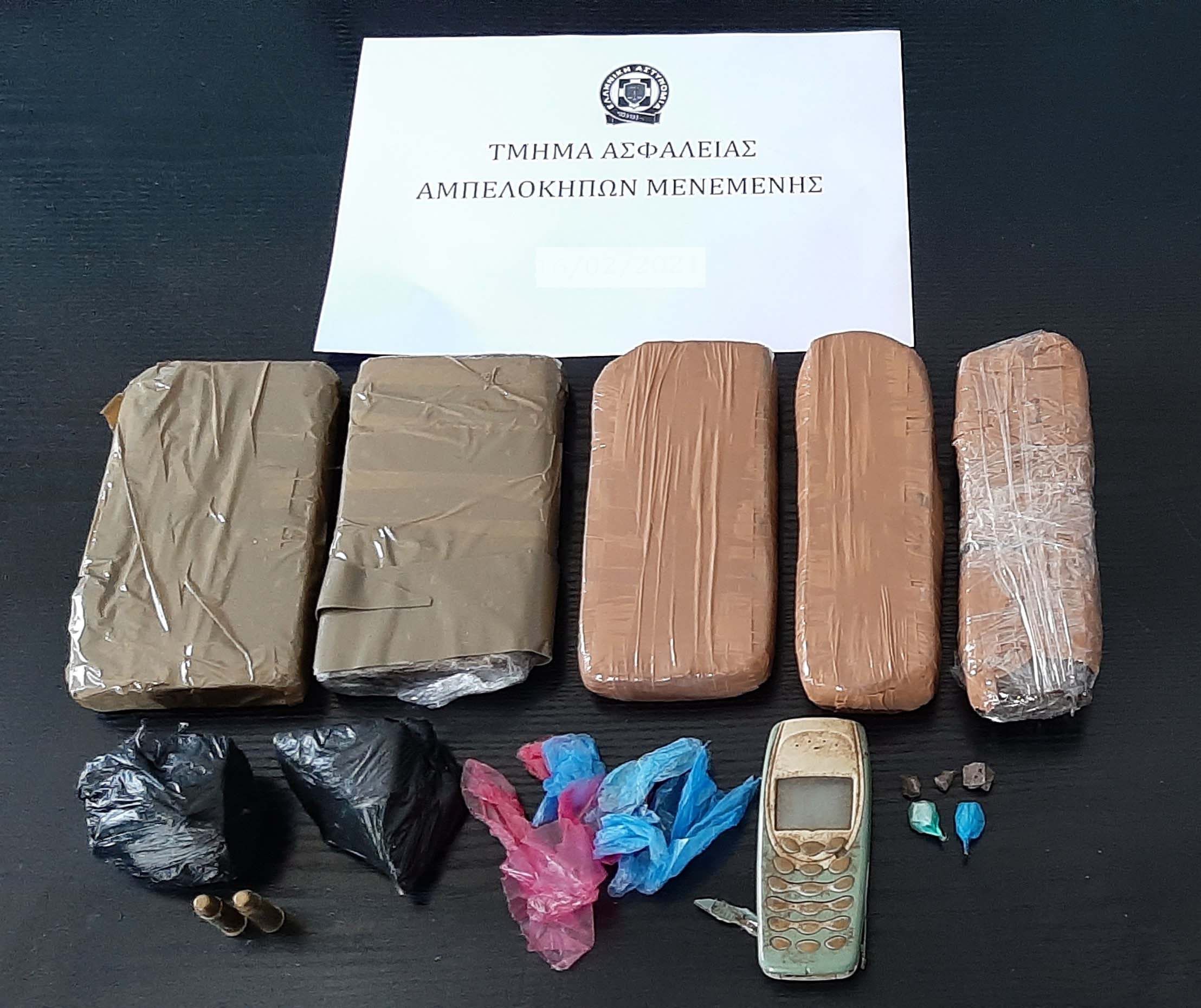 5 αυτοσχέδιες συσκευασίες ηρωίνης σε μορφή «πλάκας» συνολικού βάρους 2.559,60 γραμμαρίων,