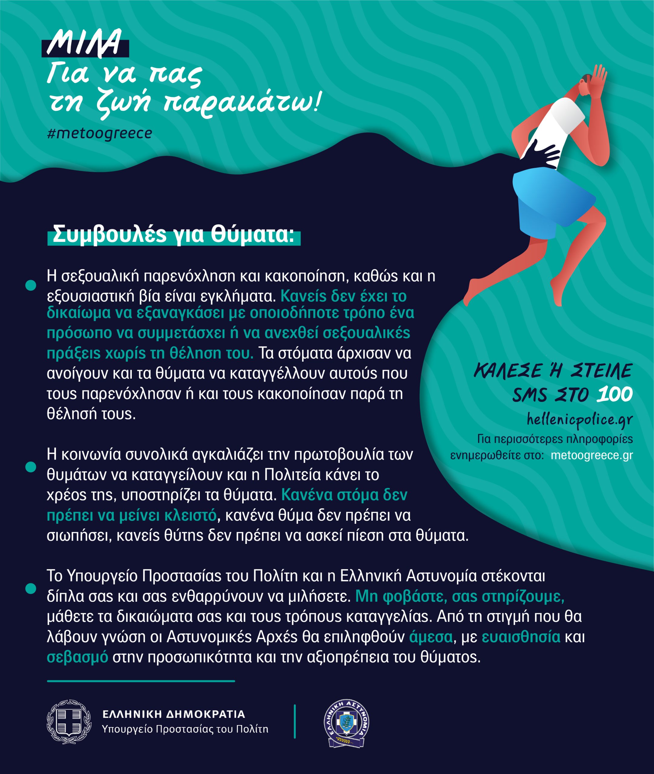 Σκεφτείτε ότι με την αναφορά – καταγγελία των σε βάρος σας πράξεων, προστατεύετε και άλλα άτομα από τον ίδιο δράστη ή άλλους πιθανούς δράστες.