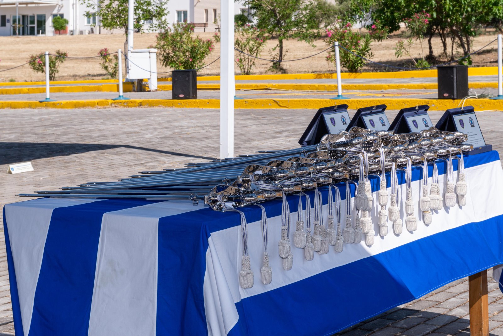 Τα ξίφη επιδόθηκαν στους νέους Αξιωματικούς παρουσία και του Διοικητή της Αστυνομικής Ακαδημίας, Υποστράτηγου Εμμανουήλ Δασκαλάκη και του Διοικητή της Σχολής Μετεκπαίδευσης και Επιμόρφωσης Ελληνικής Αστυνομίας, Αστυνομικού Διευθυντή Βασίλειου Σαλούκα, ο οποίος ανέγνωσε και την Ημερήσια Διαταγή.