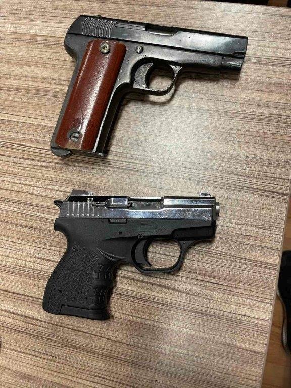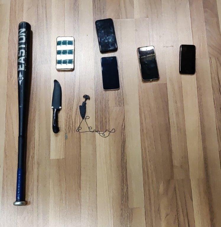 Στις έρευνες που πραγματοποιήθηκαν βρέθηκαν συνολικά και κατασχέθηκαν, 3 πιστόλια με 3 γεμιστήρες, αεροβόλο πιστόλι με αμπούλες προωθητικού αερίου, 2 μαχαίρια, μεταλλικό ρόπαλο, 5 κινητά τηλέφωνα, καθώς και 2 αυτοκίνητα και μοτοσυκλέτα τα οποία είχαν χρησιμοποιηθεί ως μέσα μετάβασης και διαφυγής.