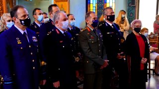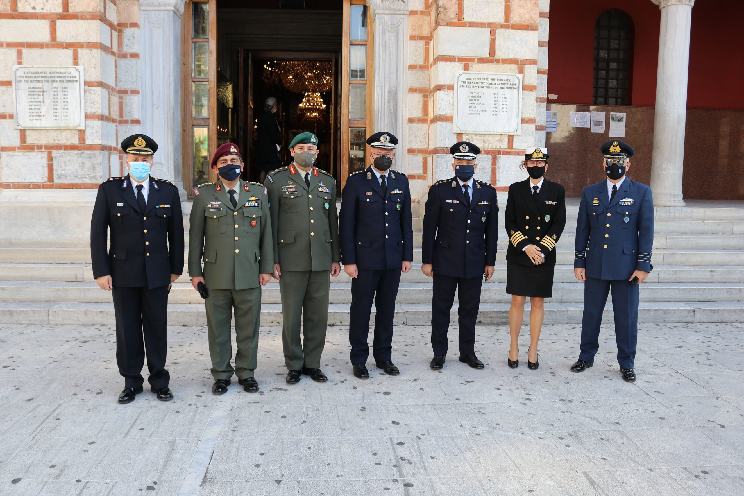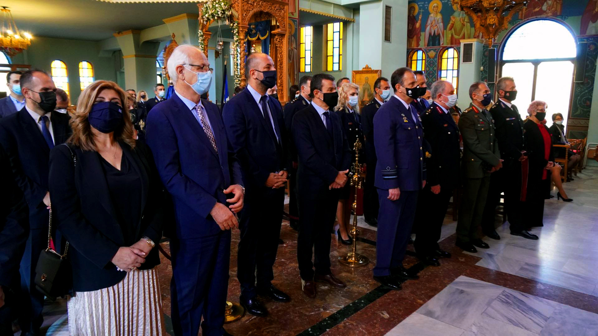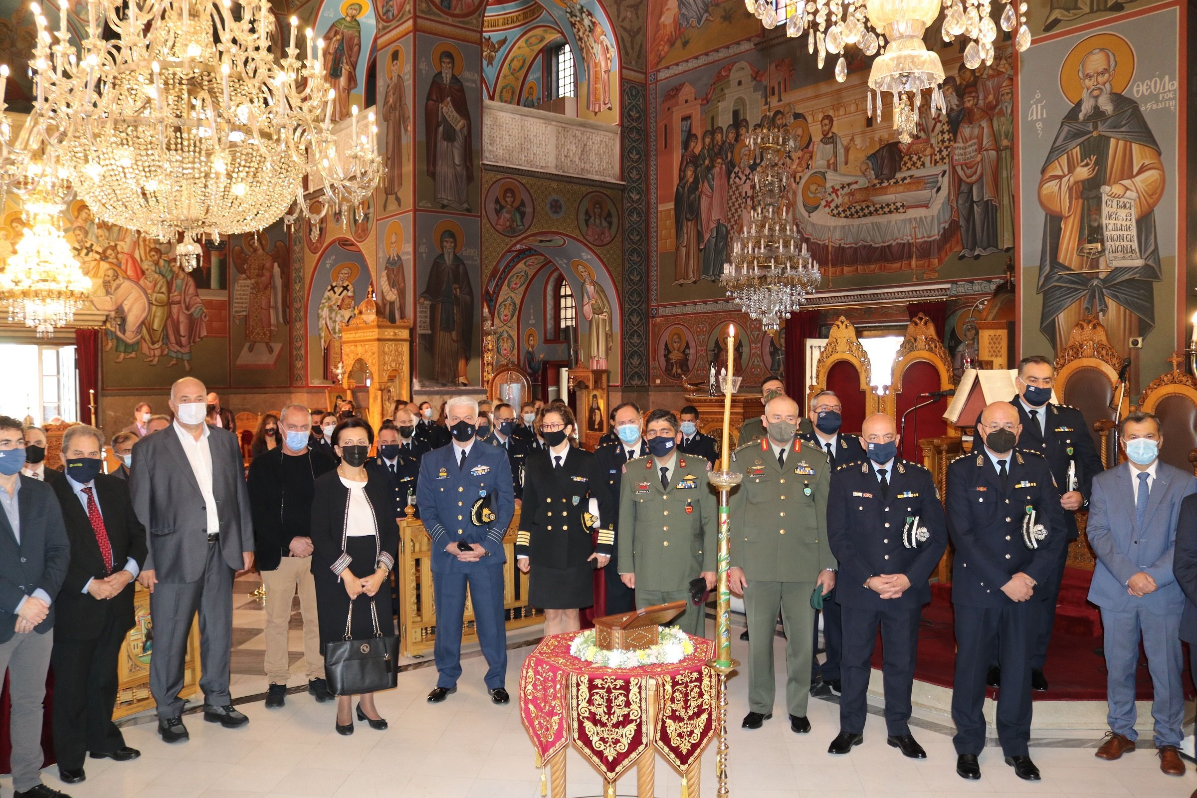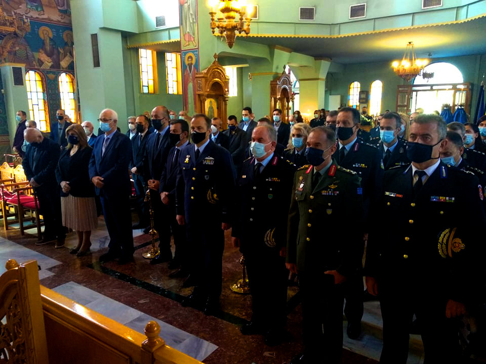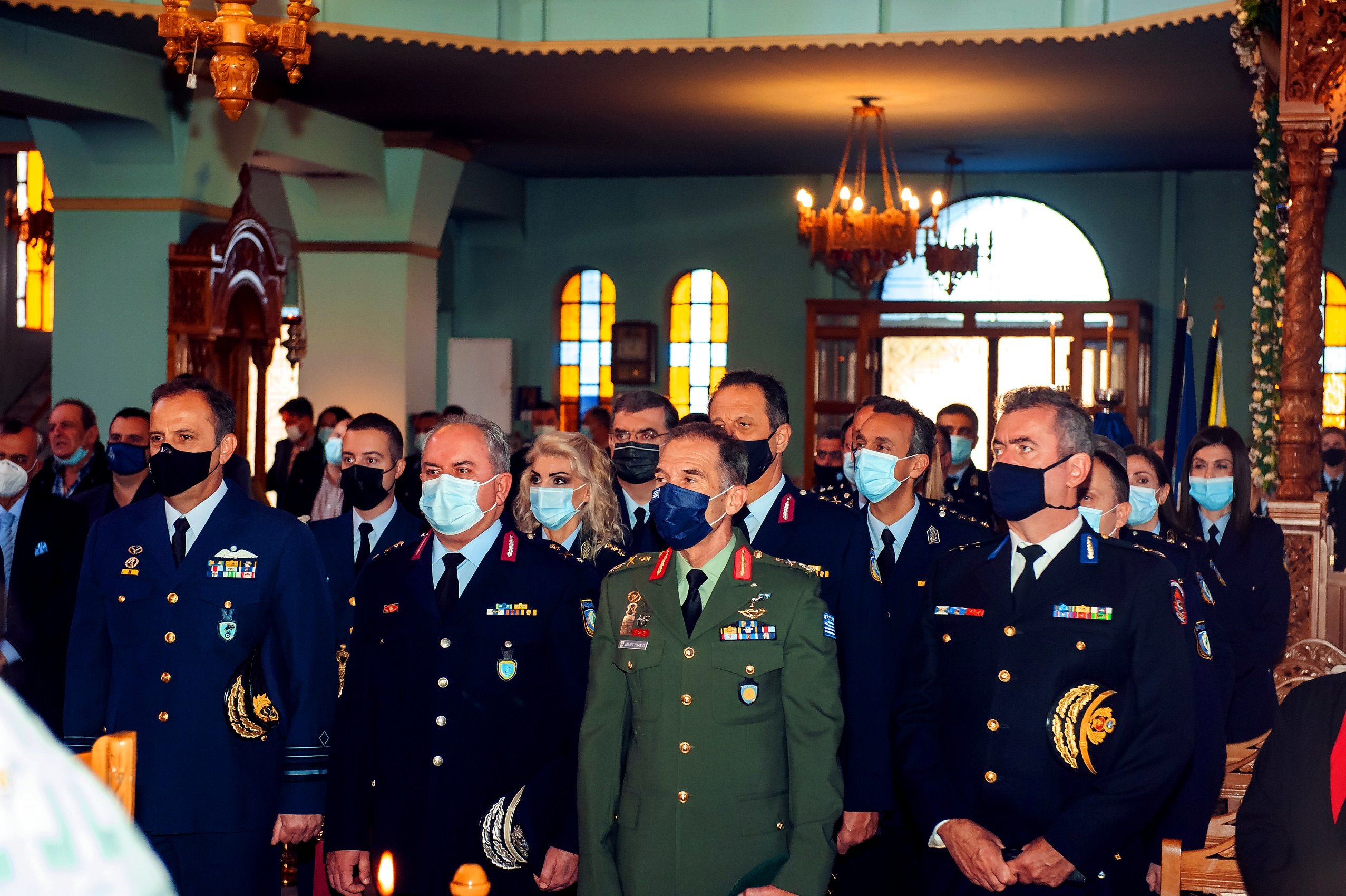 Ø στα Τρίκαλα, χοροστάτησε ο Σεβασμιότατος Μητροπολίτης Τρίκκης, Γαρδικίου και Πύλης, κ.κ. Χρυσόστομος, ενώ παρέστησαν ο Θεματικός Αντιπεριφερειάρχης Περιβάλλοντος, Χωρικού Σχεδιασμού και Πολιτικής Γης, Κωνσταντίνος Μπάρδας, ο Αντιδήμαρχος του Δήμου Τρικκαίων, Γεώργιος Ζιώγας, ο Διοικητής της Σχολής Μονίμων Υπαξιωματικών (Σ.Μ.Υ.), Ταξίαρχος Κωνσταντίνος Δαλάκης, ο Διοικητής της Πυροσβεστικής Υπηρεσίας Τρικάλων, Πύραρχος Δημήτριος Γαλάνης, ο Πρόεδρος της Ένωσης Αποστράτων νομού Τρικάλων, Ιωάννης Διαμάντης, εκπρόσωποι της Ένωσης Αστυνομικών Υπαλλήλων Τρικάλων, ο Πρόεδρος της Εβραϊκής Κοινότητας Τρικάλων, Ιακώβ Βενουζίου, η Προϊσταμένη της Δημοτικής Αστυνομίας Τρικάλων, η Διευθύντρια της Τοπικής Μονάδας Υγείας (Τ.Ο.Μ.Υ.) Τρικάλων, καθώς και εν ενεργεία αστυνομικοί.