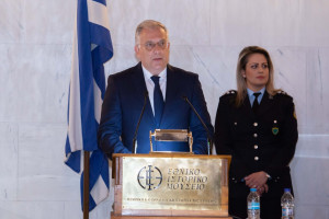 Στο Εθνικό Ιστορικό Μουσείο (Μέγαρο της Παλαιάς Βουλής) πραγματοποιήθηκε χθες Τρίτη, 22 Μαρτίου 2022, εκδήλωση για την παρουσίαση αφιερωματικού τόμου του Πολιτιστικού Κέντρου Ελληνικής Αστυνομίας (ΠΟ.Κ.Ε.Α.) και του Πανεπιστήμιου Πελοποννήσου, παρουσία του Μακαριώτατου Αρχιεπίσκοπου Αθηνών και πάσης Ελλάδος κ.κ. Ιερώνυμου, του Υπουργού Προστασίας του Πολίτη, Παναγιώτη Θεοδωρικάκου και του Αρχηγού της Ελληνικής Αστυνομίας, Αντιστράτηγου Μιχαήλ Καραμαλάκη.