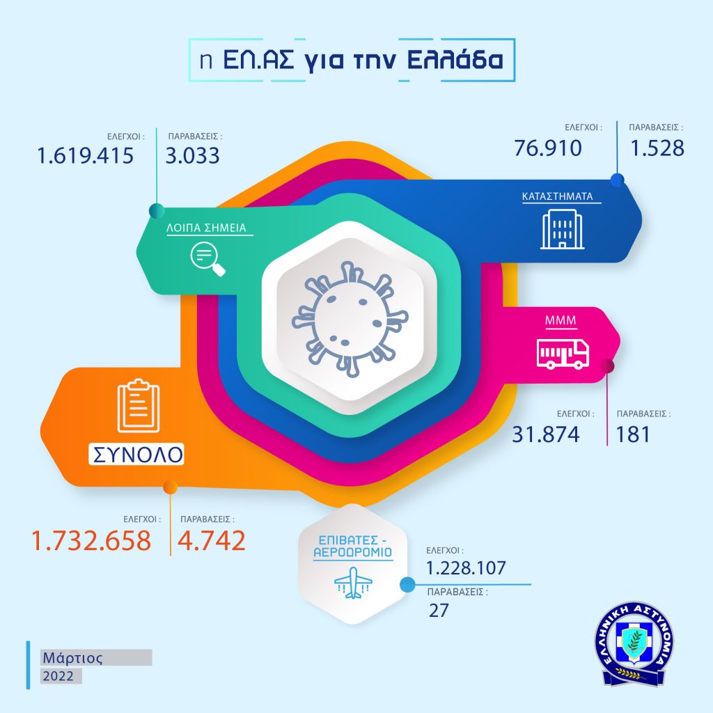 Απολογισμός δραστηριότητας των Υπηρεσιών της Ελληνικής Αστυνομίας για τον Μάρτιο 2022