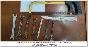 Κατασχέθηκαν καλώδια χαλκού, σιδεροπρίονο, μαχαίρι και εργαλεία