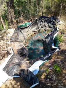 δύο αυτοσχέδιους χώρους συλλογής υδάτων, με νάιλον και κορμούς δένδρων
