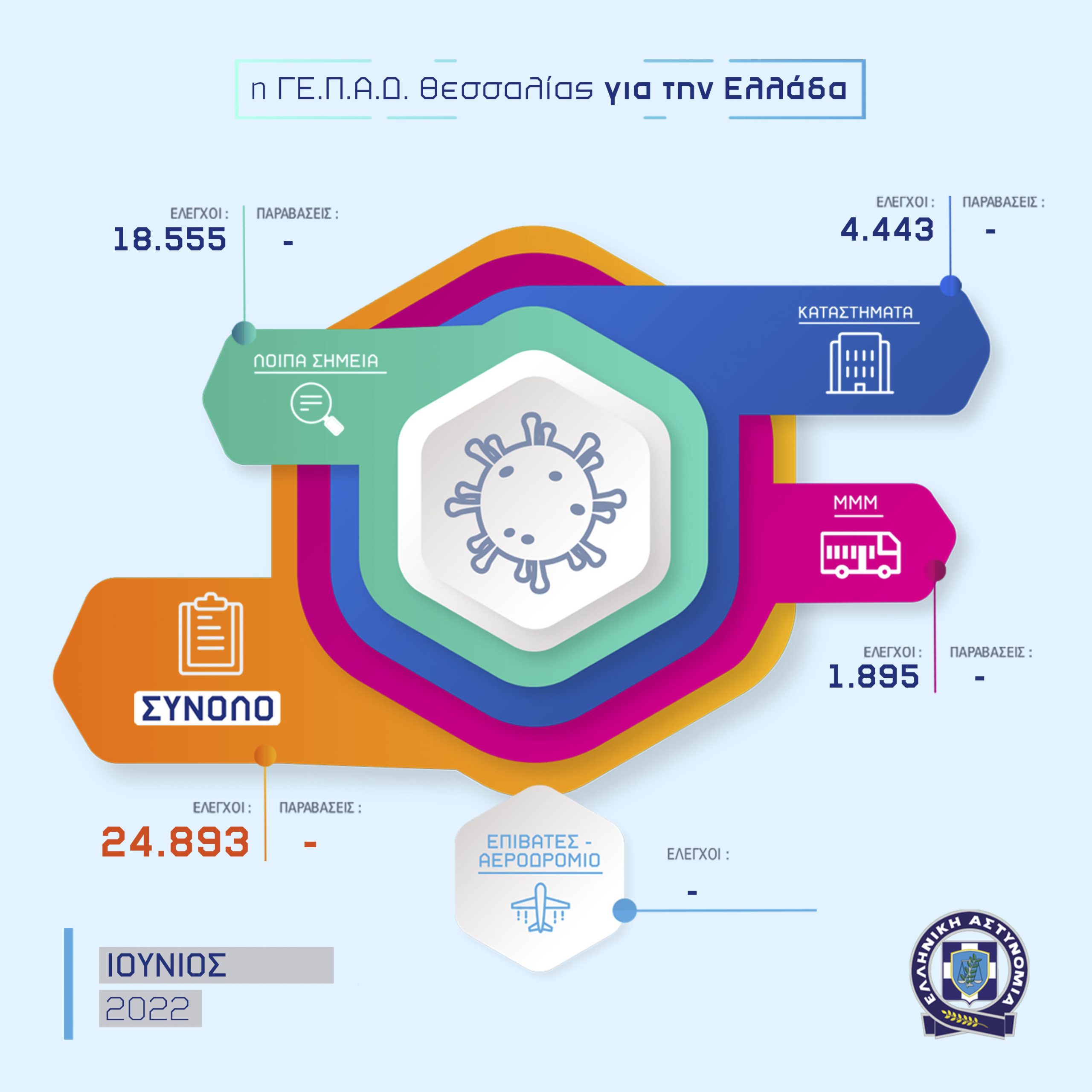 Απολογισμός δραστηριότητας των Υπηρεσιών της Γενικής Περιφερειακής Αστυνομικής Διεύθυνσης Θεσσαλίας για τον Ιούνιο 2022