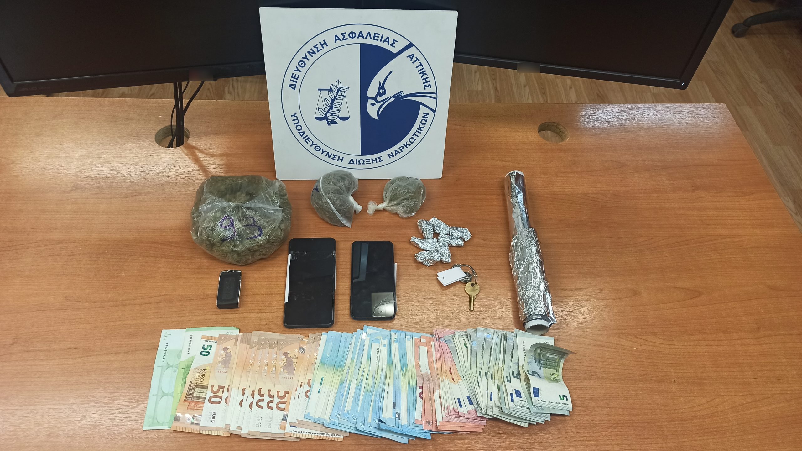 Κατασχέθηκαν 135,2 γραμμ. ακατέργαστης κάνναβης, το χρηματικό ποσό των -3.155- ευρώ, -1- ηλεκτρονική ζυγαριά ακριβείας, και -2- κινητά τηλέφωνα