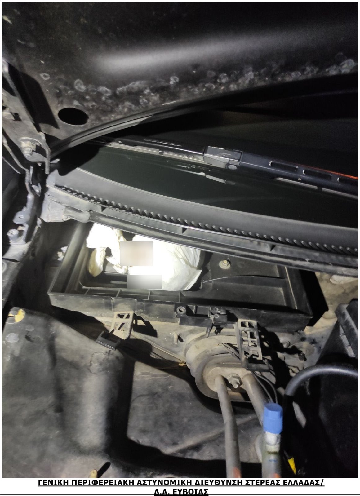 Συνελήφθη αλλοδαπός σε περιοχή της Βόρειας Εύβοιας, ο οποίος έκρυβε (111,30) γραμμάρια κάνναβης στον κινητήρα αυτοκινήτου που οδηγούσε