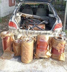 Τα προαναφερόμενα οχήματα κατασχέθηκαν, ενώ στο εσωτερικό του ενός, βρέθηκαν και κατασχέθηκαν 7 πηνία χαλκού, συνολικού βάρους 510 κιλών και 6 κομμάτια καλωδίων, 4 μέτρων περίπου το καθένα, συνολικού βάρους 80 κιλών.