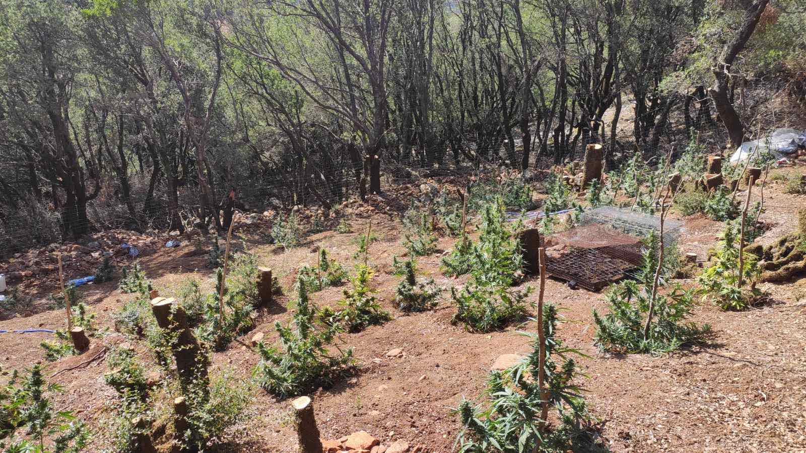 Κατά την διάρκεια της εξερεύνησης εντοπίστηκε σε δύσβατη δασική έκταση και σε 2 ειδικά διαμορφωμένους χώρους , φυτεία δενδρυλλίων κάνναβης, στην οποία καλλιεργούντο επιμελώς πεντακόσια εξήντα πέντε (565) δενδρύλλια κάνναβης ύψους έως 2 μέτρα στο στάδιο της ανάπτυξης, τα οποία αφού εκριζώθηκαν στη συνέχεια κατασχέθηκαν.
