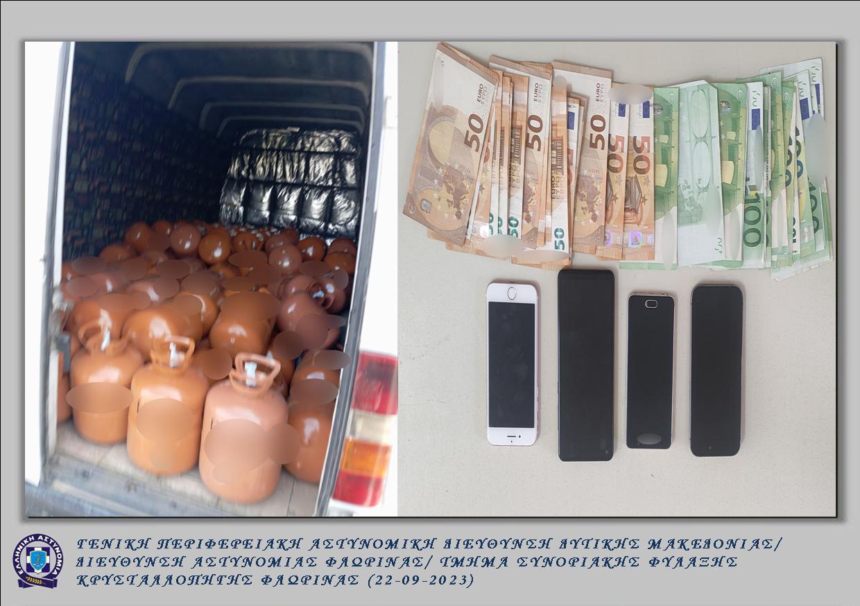 Συνελήφθησαν δύο άτομα σε περιοχή της Φλώρινας, για παράνομη μεταφορά -149- φιαλών που περιείχαν ψυκτικό υγρό (φρέον), βάρους άνω του -1,5- τόνου