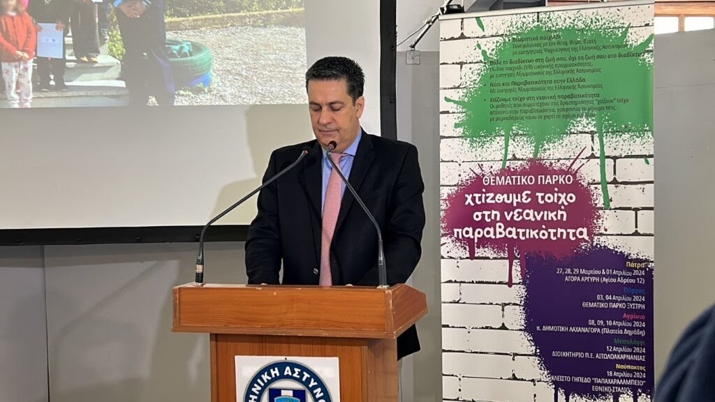 Στην Αιτωλοακαρνανία συνεχίζεται το Θεματικό Πάρκο : «Χτίζουμε Τοίχο στη Νεανική Παραβατικότητα», που ξεκίνησε τη λειτουργία του, στις 08-04-2024 και θα συνεχιστεί έως τις 10-04-2024, στο Αγρίνιο, στην πρώην Δημοτική Λαχαναγορά, Πλατεία Δημάδη.