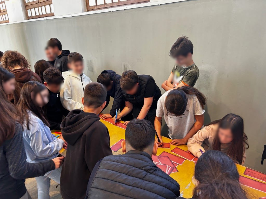 Στο τέλος οι μαθητές συμμετείχαν προαιρετικά σε δραστηριότητα ζωγραφικής γράφοντας το μήνυμα τους με μαρκαδόρους, πάνω σε τμήμα χάρτου, που φέρει το σχήμα τούβλου.