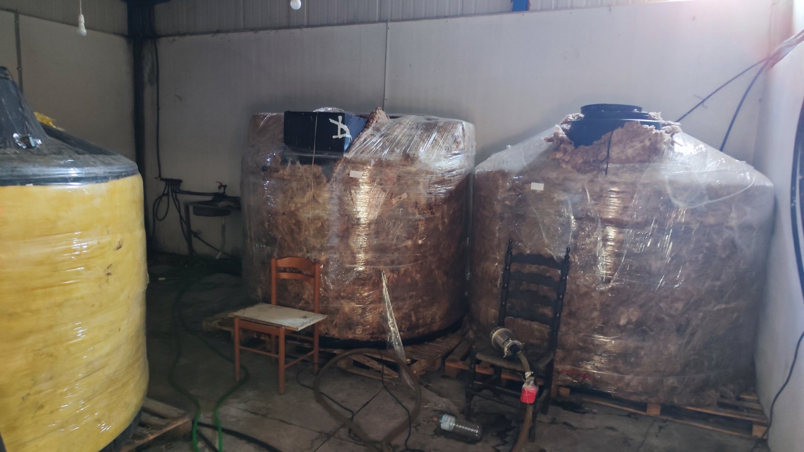 Κατασχέθηκαν, μεταξύ άλλων, 1.890 λίτρα αλκοολούχου υγρού, 61 πλαστικές δεξαμενές με παραπάνω από 82.900 λίτρα με υγρό άγνωστης σύστασης