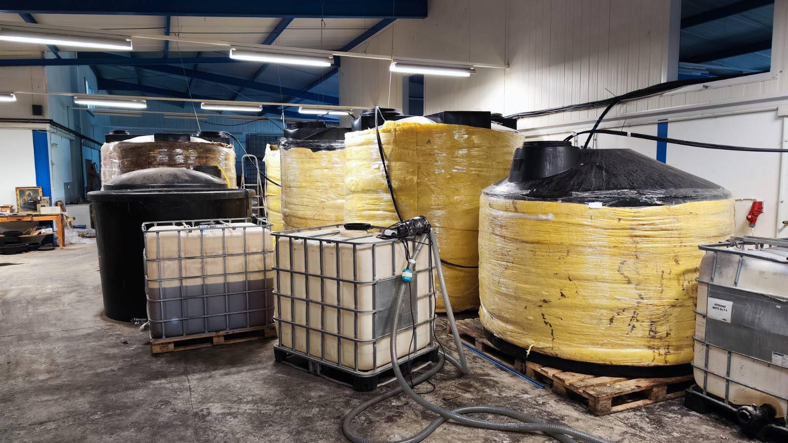 - 61 πλαστικές δεξαμενές με παραπάνω από 82.900 λίτρα με υγρό άγνωστης σύστασης,