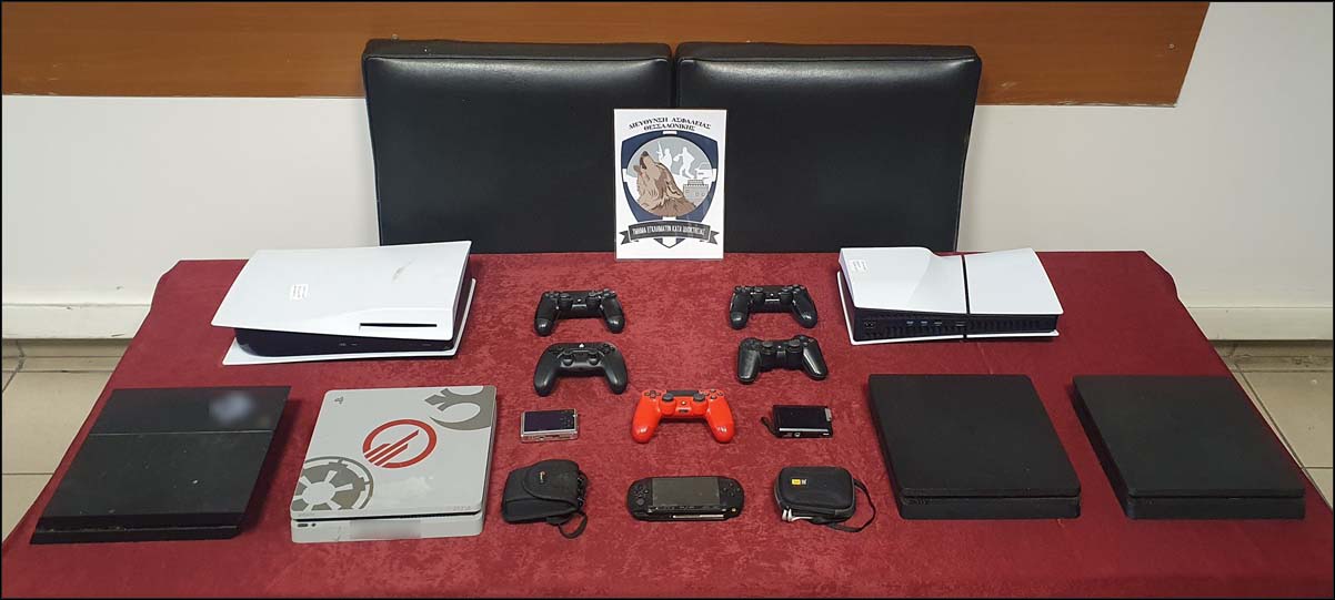 Κατά τη διάρκεια των επιχειρήσεων που πραγματοποιήθηκαν σε 34 οικίες, βρέθηκαν και κατασχέθηκαν το συνολικό χρηματικό ποσό των (12.780,00) ευρώ, (42) ανδρικά και γυναικεία ρολόγια χειρός, (50) χρυσαφικά – τιμαλφή διαφόρων ειδών (σκουλαρίκια, δακτυλίδια κτλ), μια χρυσή λίρα Αγγλίας, (06) κονσόλες ηλεκτρονικών παιχνιδιών, συσκευές κινητής τηλεφωνίας και πακέτα τηλεφωνικής σύνδεσης, δυο πιστόλια κρότου αερίου, (47) φυσίγγια κρότου, ένα (01) δίκαννο κυνηγετικό όπλο με κομμένες τις κάννες, ένας φορητός πομποδέκτης συντονισμένος στις συχνότητες της ΕΛ.ΑΣ και μικροποσότητα ακατέργαστής κάνναβης.