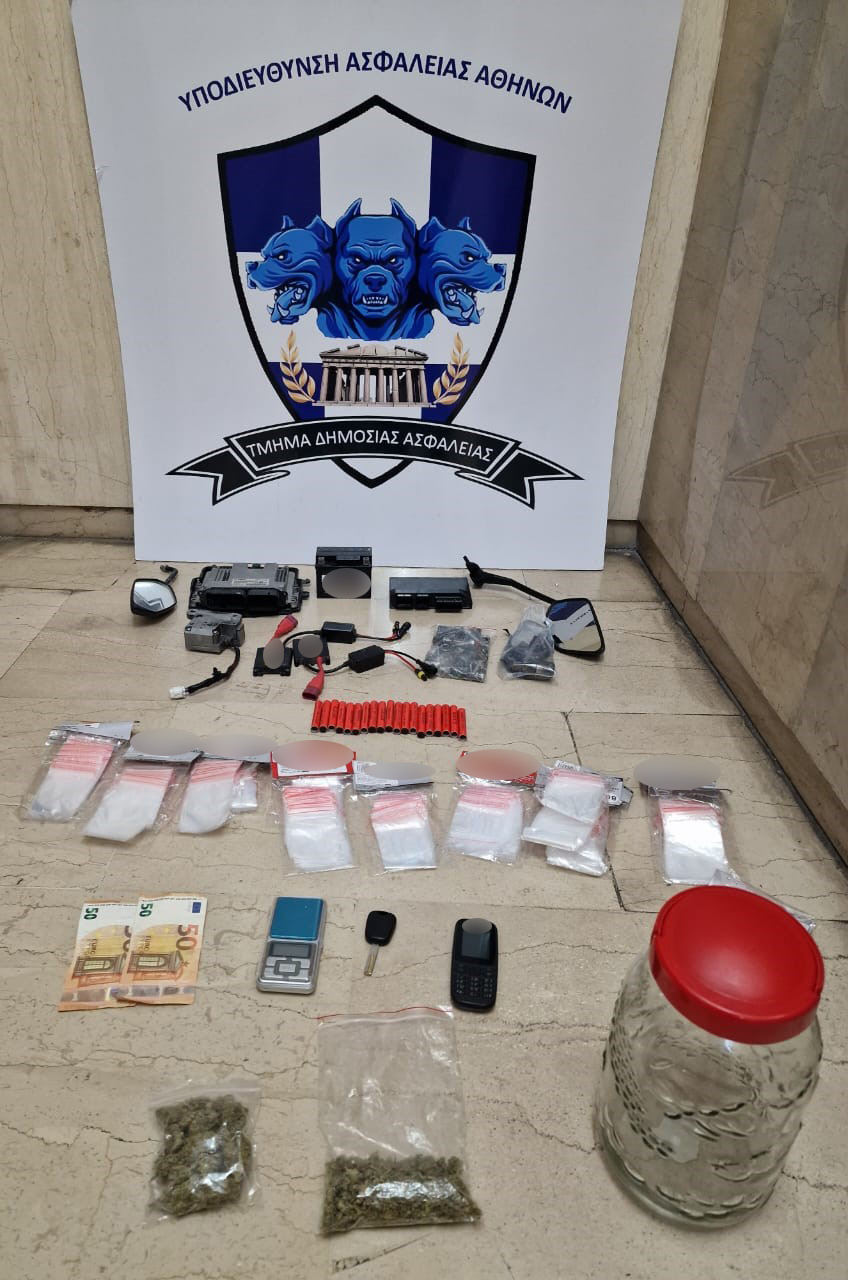 Κατασχέθηκαν μεταξύ άλλων πιστόλι-ρέπλικα, το χρηματικό ποσό των -38.265- ευρώ, ποσότητες ηρωίνης και κάνναβης και εξαρτήματα οχημάτων