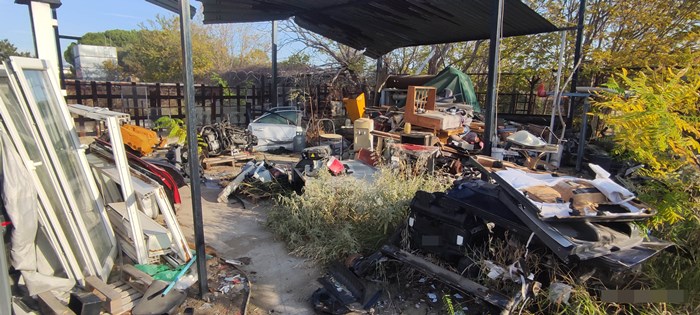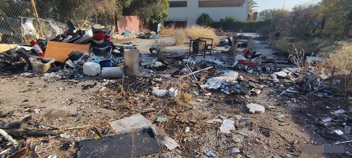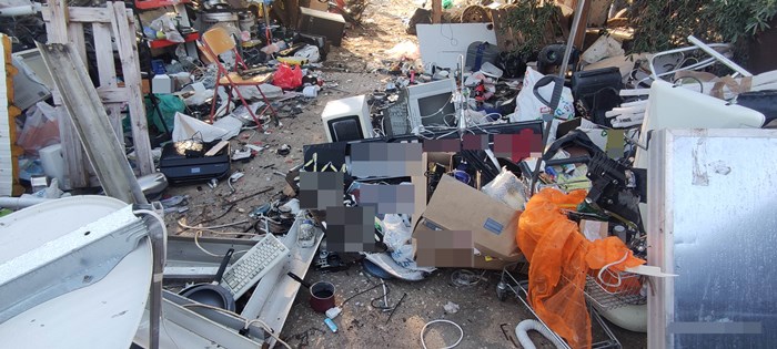 Επιπλέον, στον προαύλιο χώρο, υπήρχαν τοποθετημένες σε παλέτα  αποξιλωμένες πλάκες ελενίτ (αμίαντος), τα οποία χαρακτηρίζονται ως επικίνδυνα απόβλητα, ενώ παραπλεύρως του ίδιου χώρου, υπήρχαν σκορπισμένα στο έδαφος απόβλητα ηλεκτρονικού και ηλεκτρικού εξοπλισμού, ηλεκτρικές συσκευές, καθώς και μέρη αυτών.