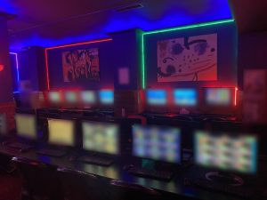 Παράλληλα, στο δεύτερο κατάστημα διαπιστώθηκε ότι η προσωρινά υπεύθυνη, ενεργώντας για λογαριασμό του μη συλληφθέντα ιδιοκτήτη του καταστήματος, είχε εγκαταστήσει ηλεκτρονικούς υπολογιστές, οι οθόνες των οποίων απεικόνιζαν το τυχερό παίγνιο «φρουτάκια», άνευ αδείας της αρμόδιας Αρχής.