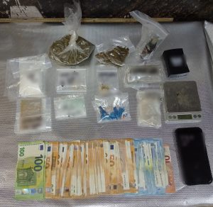 Κατασχέθηκαν μεταξύ άλλων -161,1- γραμμ. κάνναβης σε μορφή «σοκολάτας», -67,2- γραμμ. MDMA και -3.900- ευρώ