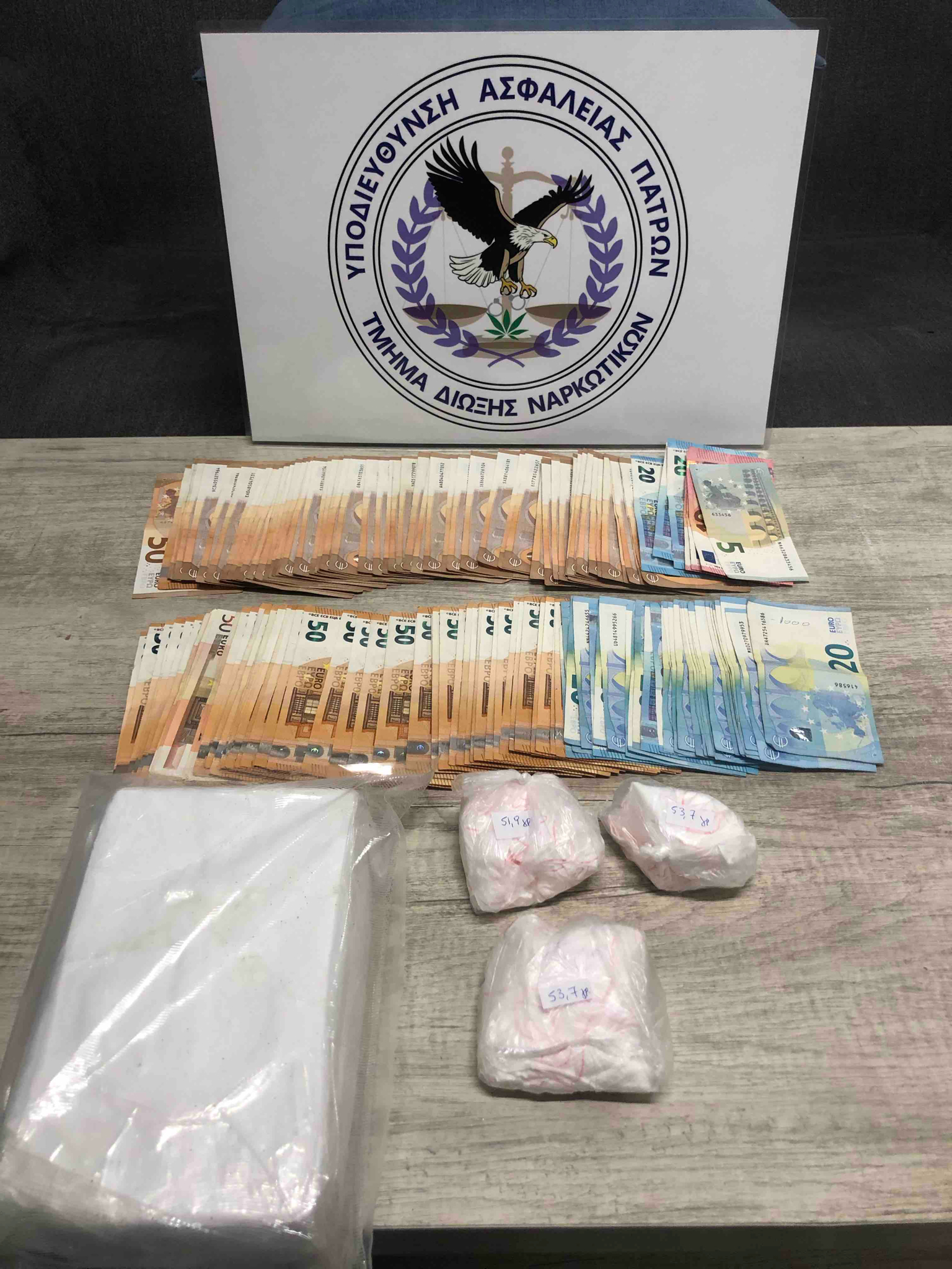 Κατασχέθηκαν περισσότερα από 1.200 γραμμάρια κοκαΐνης συνολικής αξίας 100.000 ευρώ περίπου