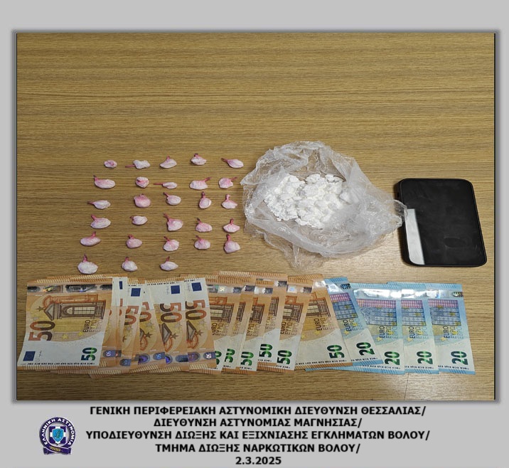 Συνελήφθη, χθες (01-03-2025) το απόγευμα στον Βόλο, από αστυνομικούς του Τμήματος Δίωξης Ναρκωτικών της Υποδιεύθυνσης Δίωξης και Εξιχνίασης Εγκλημάτων Βόλου, -1- ανήλικος ημεδαπός, σε βάρος του οποίου σχηματίστηκε δικογραφία για παράβαση της νομοθεσίας περί ναρκωτικών.