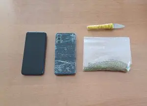Κατασχέθηκαν -15,7- γραμμάρια κάνναβης, -1- αυτοσχέδιο μαχαίρι και -2- κινητά τηλέφωνα με -2- κάρτες sim