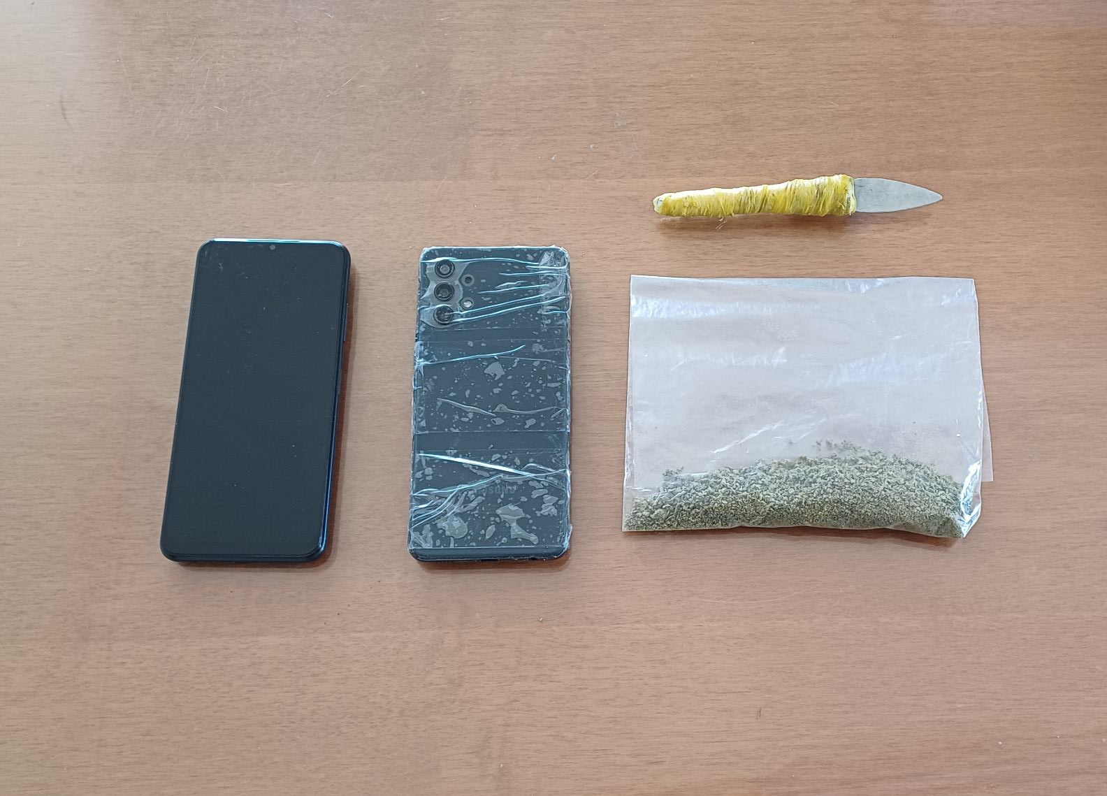 Κατασχέθηκαν -15,7- γραμμάρια κάνναβης, -1- αυτοσχέδιο μαχαίρι και -2- κινητά τηλέφωνα με -2- κάρτες sim