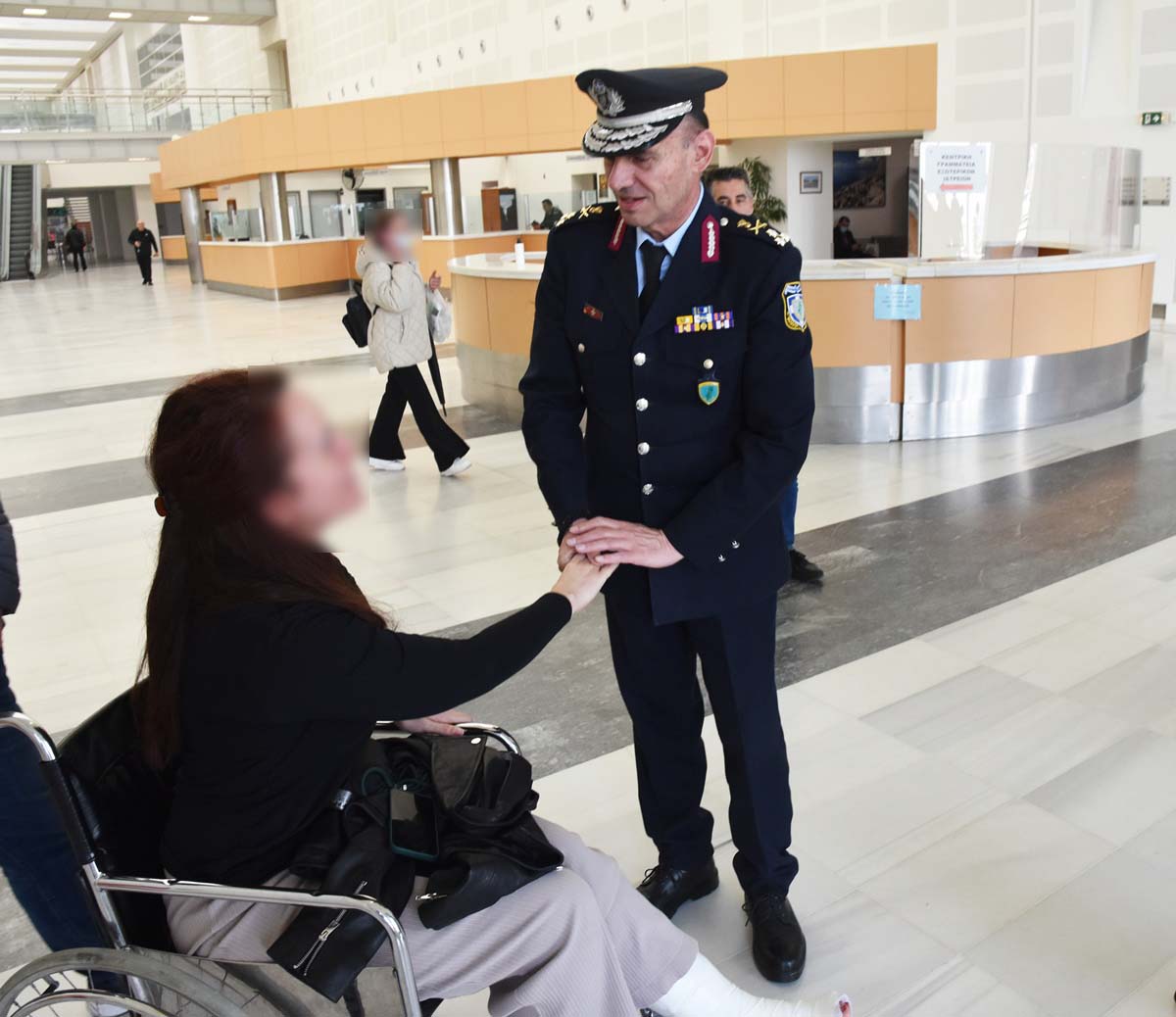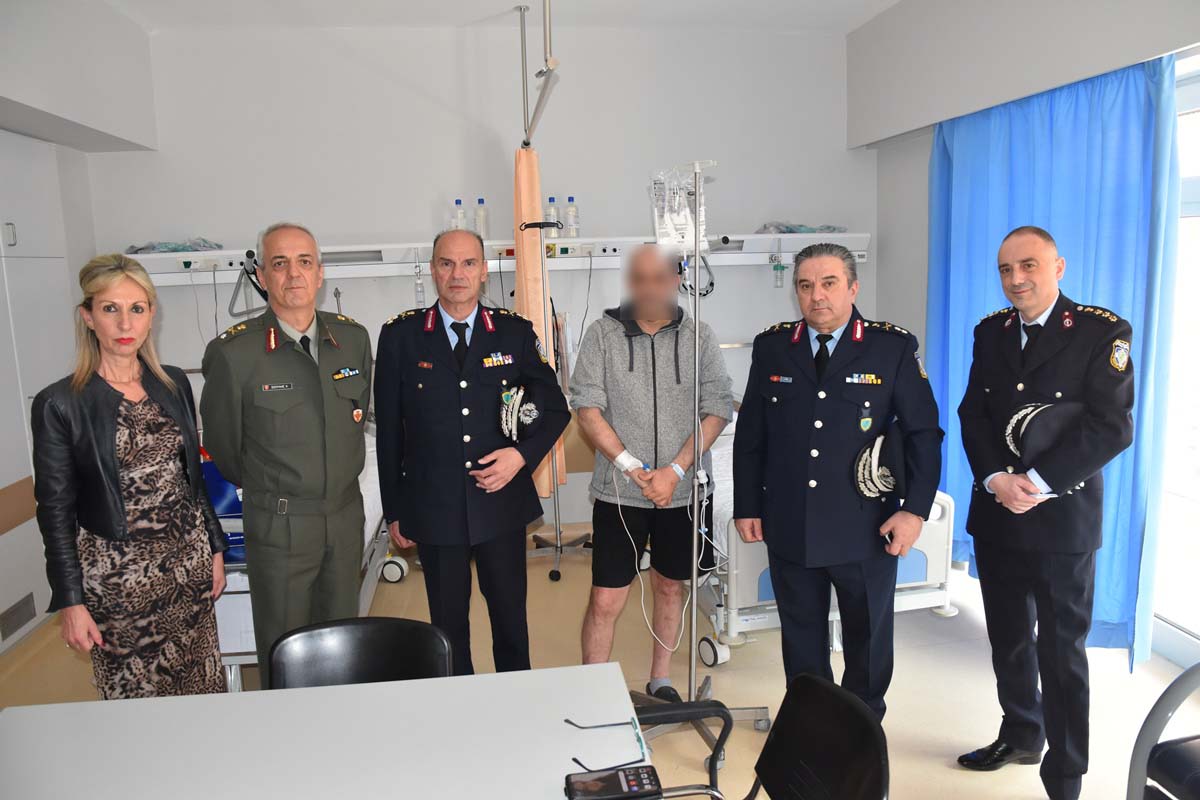 Ο Αντιστράτηγος κ. Γεώργιος Παπαδόπουλος, μετέφερε τις θερμές ευχές της Ηγεσίας του Σώματος και προσέφερε συμβολικά δώρα στους νοσηλευόμενους αστυνομικούς στους οποίους ευχήθηκε ταχεία ανάρρωση, ενώ ενημερώθηκε από τους θεράποντες ιατρούς για την κατάσταση της υγείας τους.
