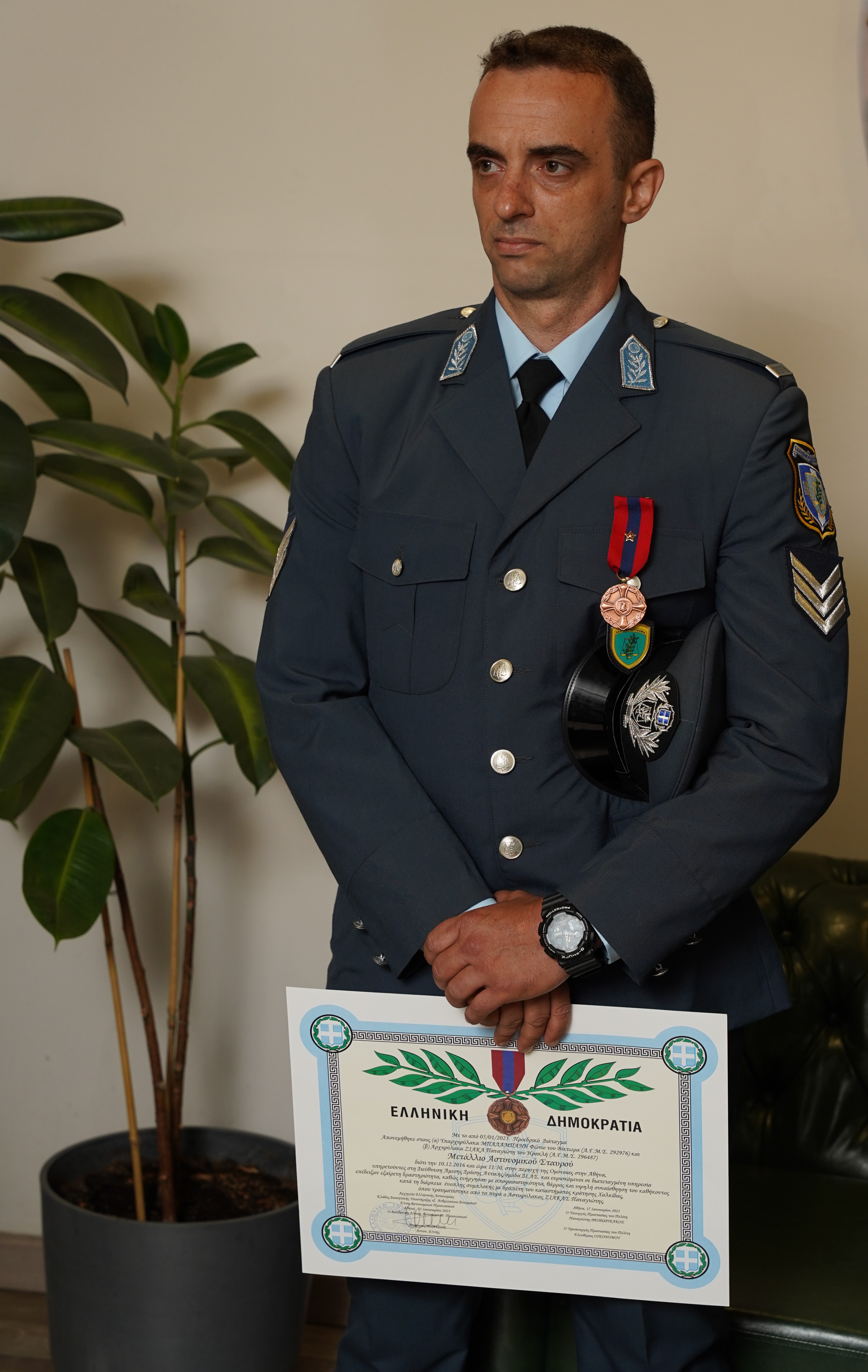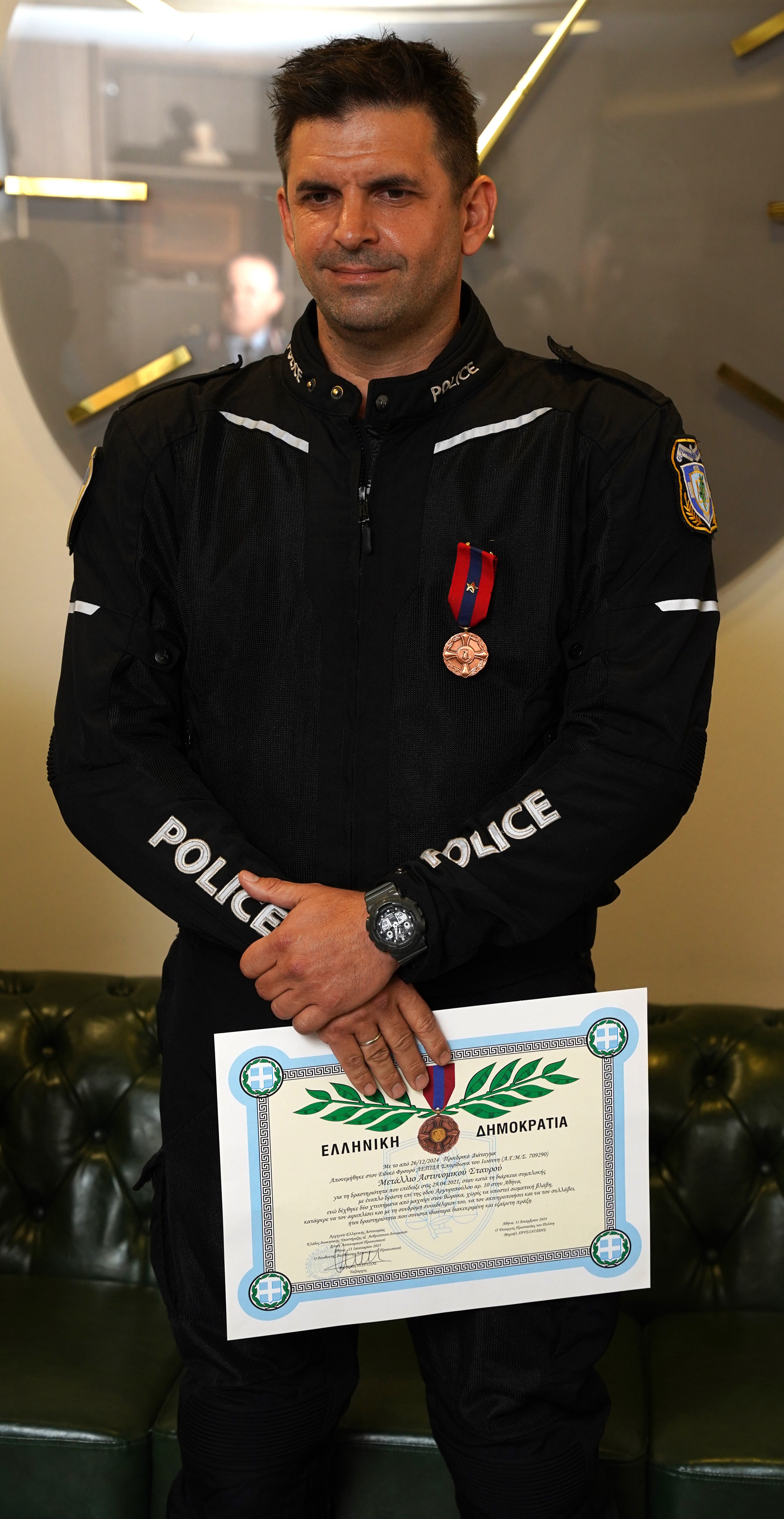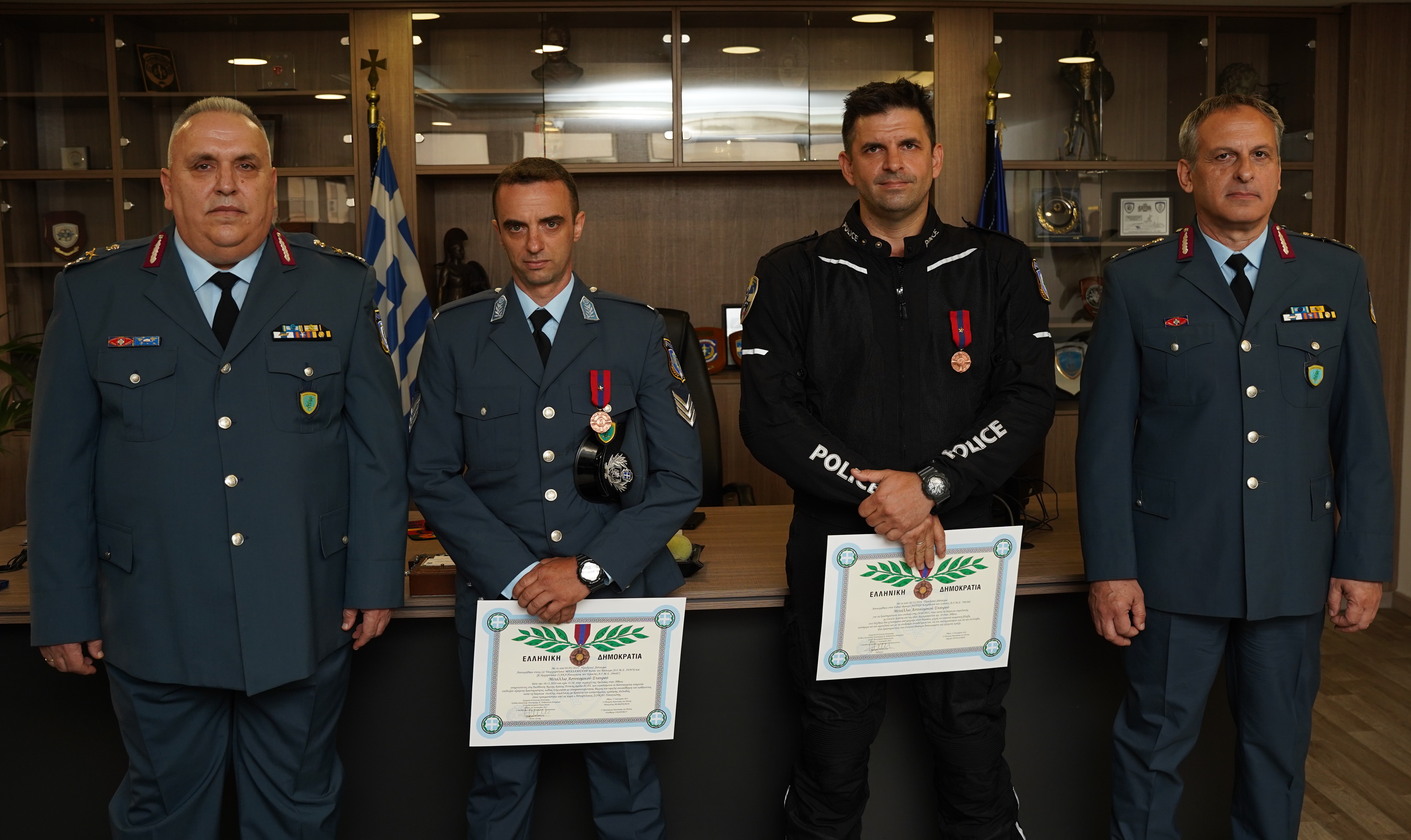 Απονομή μεταλλίων «Αστυνομικού Σταυρού» για εξαίρετη πράξη σε δύο αστυνομικούς της Ομάδας ΔΙ.ΑΣ.