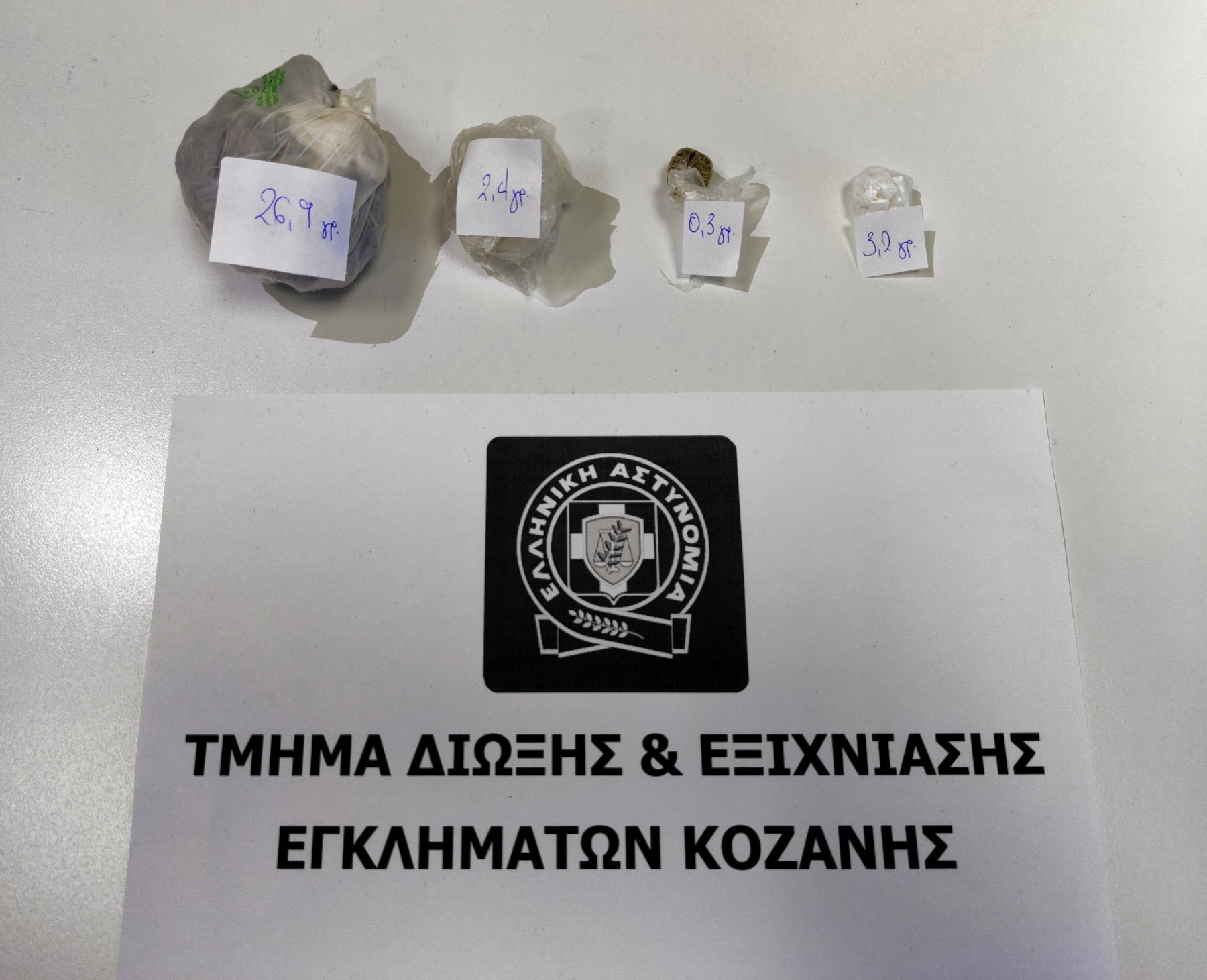 Σε έρευνα που πραγματοποιήθηκε χθες (30-09-2025) τις πρωινές ώρες, στην οικία του 32χρονου στην Κοζάνη, από τους προαναφερόμενους αστυνόμους, βρέθηκαν συνολικά και κατασχέθηκαν ποσότητες ακατέργαστης κάνναβης, βάρους –2,7-γραμμαρίων.