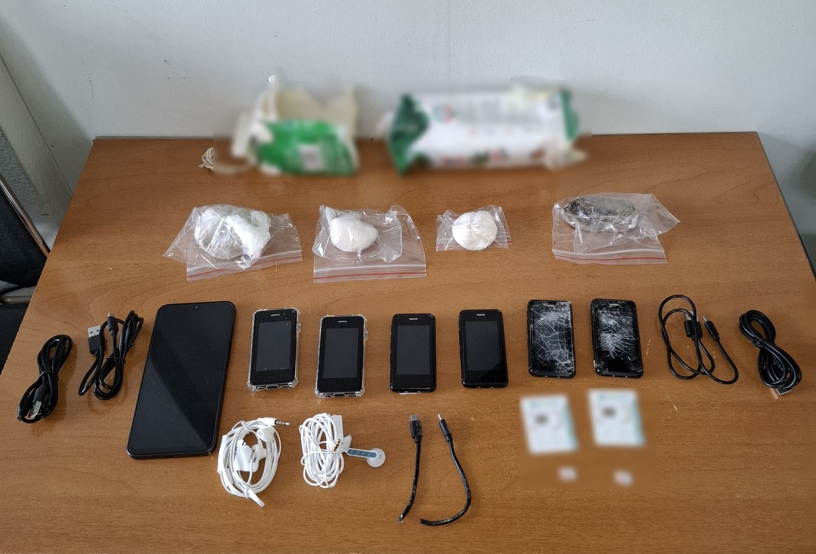 Κατασχέθηκαν, μεταξύ άλλων, ποσότητες ναρκωτικών ουσιών, αυτοσχέδιο μαχαίρι και κινητά τηλέφωνα