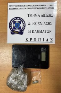 Από το Τμήμα Δίωξης και Εξιχνίασης Εγκλημάτων Κρωπίας συνελήφθη 30χρονος ημεδαπός για διακίνηση ακατέργαστης κάνναβης στην περιοχή του Κορωπίου