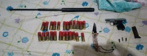 Εντοπίστηκαν, μεταξύ άλλων, πιστόλι, καραμπίνα, -32- φυσίγγια, ξύλινο ρόπαλο, μαχαίρι και μεταλλική ράβδος
