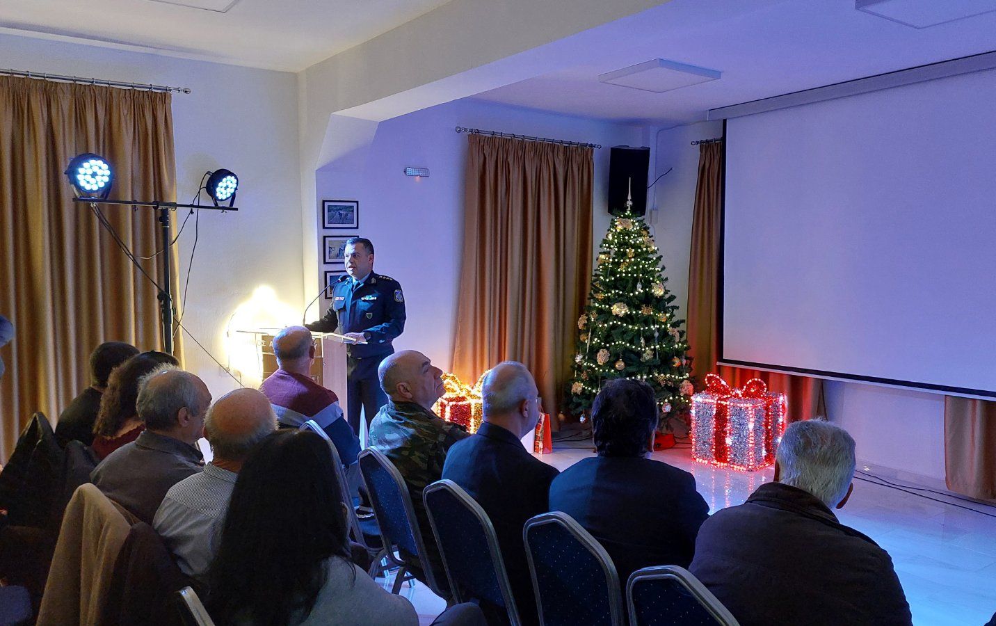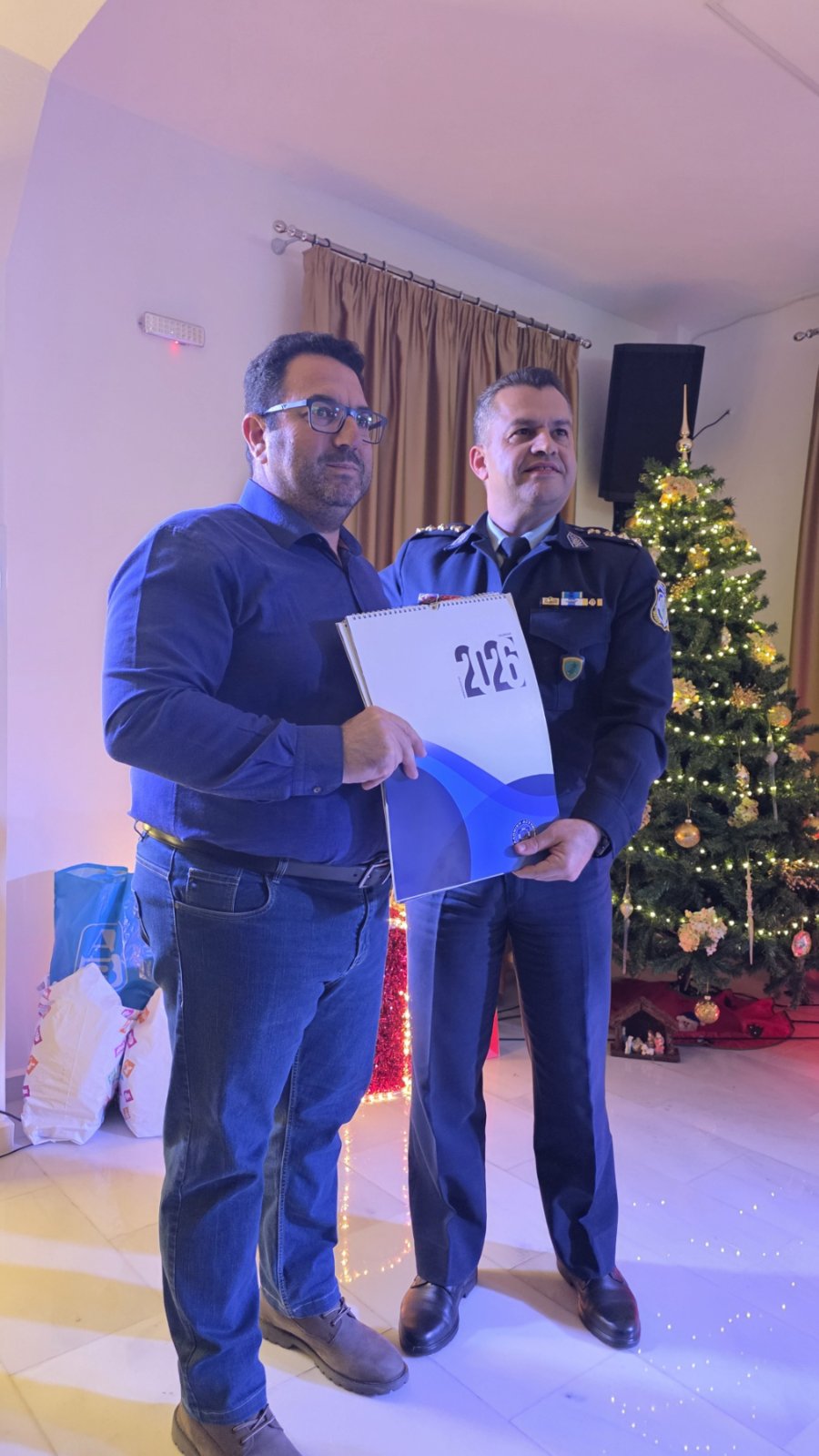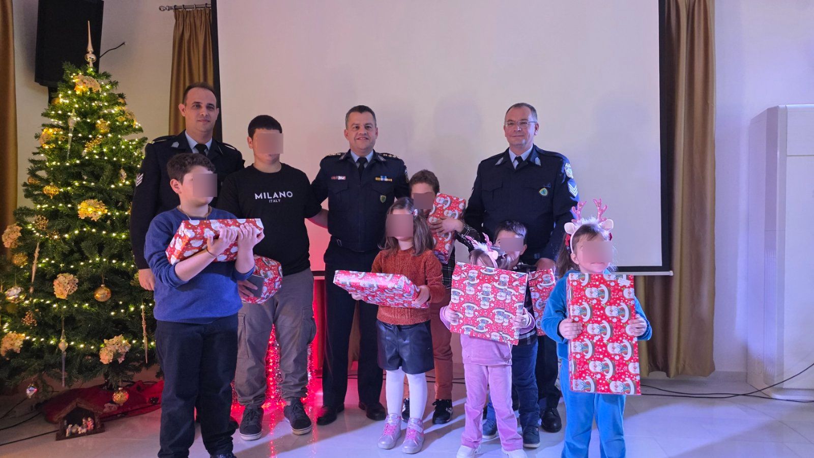 Σε Χριστουγεννιάτικη εκδήλωση που διοργάνωσε ο Δήμος Αγαθονησίου, για τους επτά (7) μαθητές διαφόρων βαθμίδων εκπαίδευσης του νησιού (Λύκειο, Δημοτικό, Νηπιαγωγείο), παρευρέθηκε ο Διευθυντής της Διεύθυνσης Αστυνομίας Σάμου κ. Μπράνης Γεώργιος, όπου ο ίδιος, μεταξύ άλλων, μοίρασε δώρα και αναμνηστικές ατζέντες της Ελληνικής Αστυνομίας, στους μαθητές.