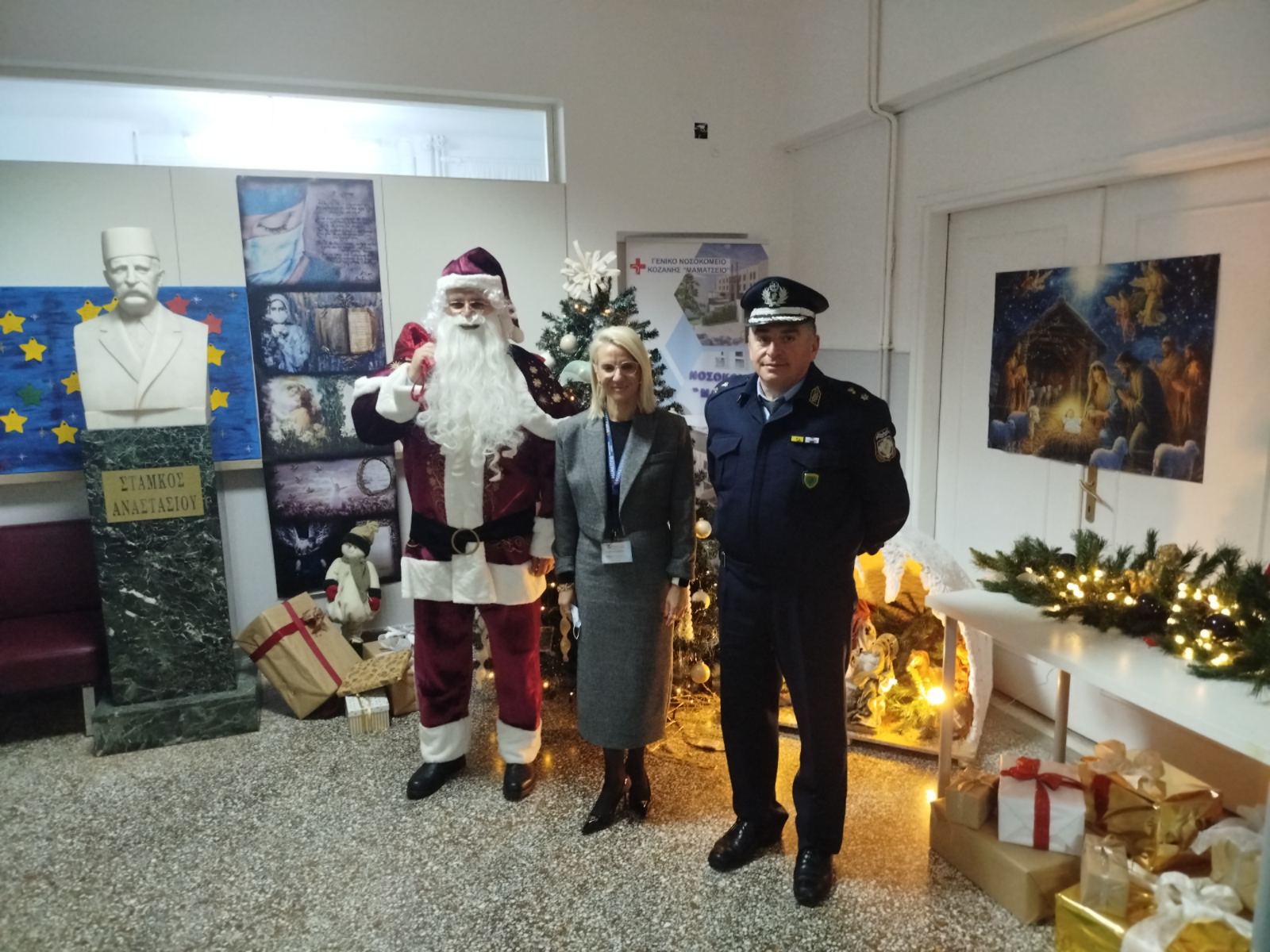 Με τη συμμετοχή του Άγιου Βασίλη, ο Διοικητής και αστυνομικό προσωπικό του Τμήματος Τροχαίας Κοζάνης επισκέφθηκαν την Παιδιατρική Κλινική του Γενικού Νοσοκομείου Κοζάνης, στο πλαίσιο εορταστικών δράσεων κοινωνικού χαρακτήρα.