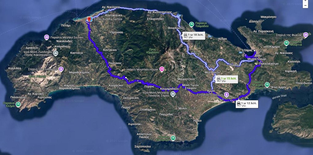 • Στο ρεύμα πορείας προς Βαθύ, τα οχήματα εκτρέπονται στη θέση «Φουρνιώτικο Ρέμα» και ακολουθούν την διαδρομή προς την Ε.Ο. Καρλοβασίου – Πυθαγορείου.