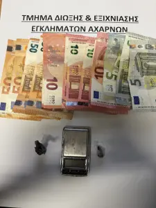 Μετά από έρευνα στην κατοχή και στην οικία της βρέθηκαν και κατασχέθηκαν ζυγαριά ακριβείας και το χρηματικό ποσό των -290- ευρώ.