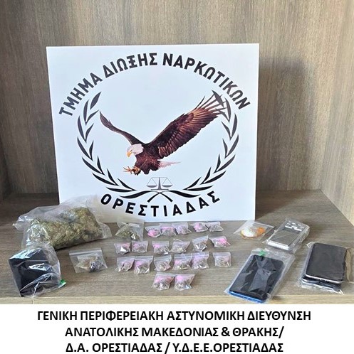 Αναλυτικότερα, σε μία περίπτωση, την 13-3-2026 το μεσημέρι, στην Ορεστιάδα, συνελήφθησαν από αστυνομικούς του Τμήματος Δίωξης Ναρκωτικών της Υποδιεύθυνσης Δίωξης και Εξιχνίασης Εγκλημάτων Ορεστιάδας δύο ημεδαποί, διότι σε έρευνες που πραγματοποιήθηκαν στις οικίες τους με τη συνδρομή του αστυνομικού σκύλου ανίχνευσης ναρκωτικών “ANDOR” και στην κατοχή τους βρέθηκαν συνολικά και κατασχέθηκαν ποσότητες ακατέργαστης κάνναβης συνολικού βάρους -240,1- γραμμαρίων, κατεργασμένη κάνναβη (σοκολάτα) βάρους -19,1- γραμμαρίων, -2- ηλεκτρονικές ζυγαριές ακριβείας, το χρηματικό ποσό των -50- ευρώ και -4- κινητά τηλέφωνα.