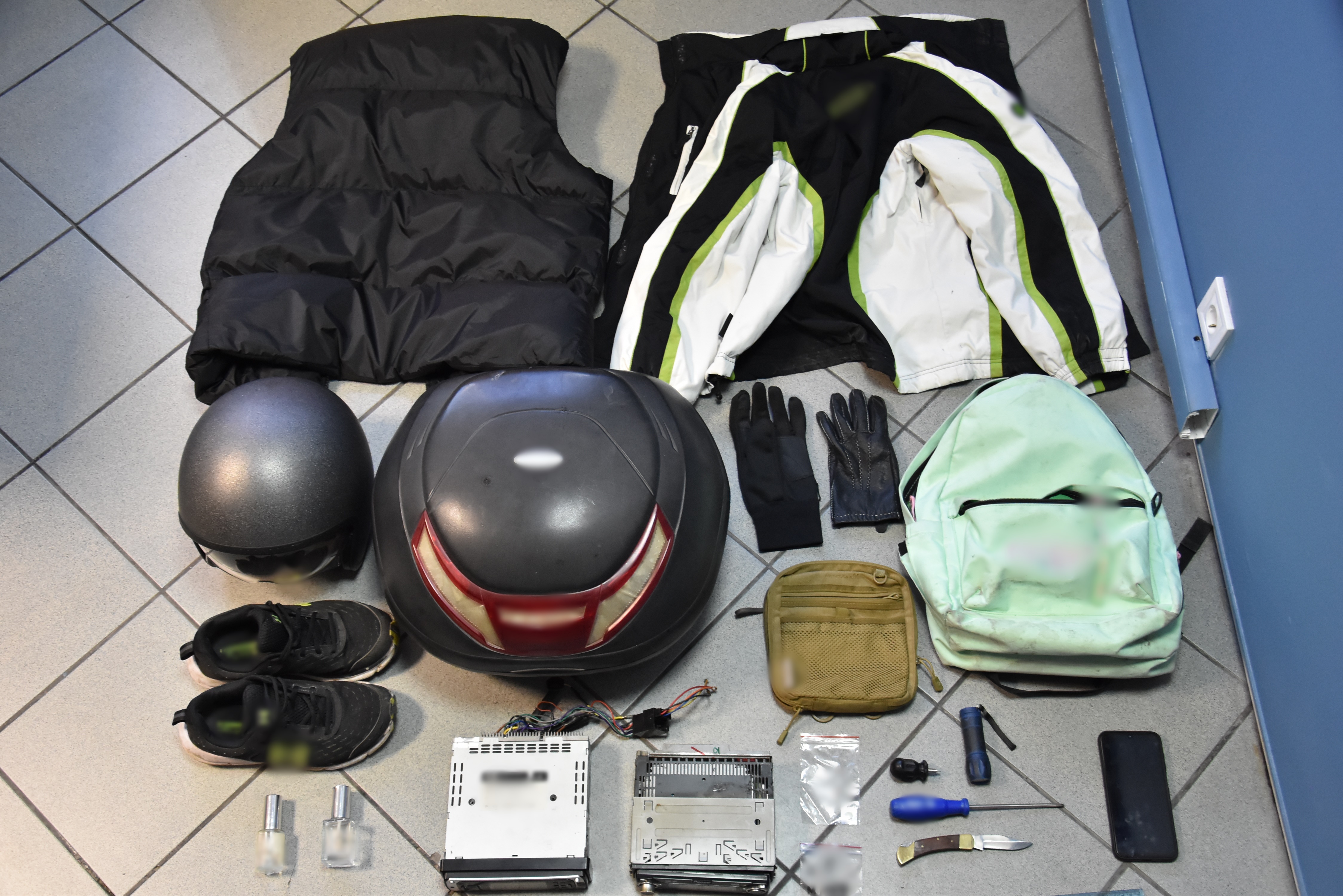 Η λεία που αποκόμισε ο συλληφθείς, από την παράνομη και εξακολουθητική δράση του, περιλαμβάνει χρήματα, ηχοσυστήματα αυτοκινήτων και άλλες ηλεκτρονικές συσκευές(κινητά τηλέφωνα, φορητός ηλεκτρονικός υπολογιστής κ.λπ.), μπαταρίες αυτοκινήτων και φορτιστές αυτών, είδη ένδυσης και υπόδησης, καθώς επίσης έγγραφα και άλλα αντικείμενα των παθόντων, η συνολική αξία των οποίων υπερβαίνει τα -4.500- ευρώ.